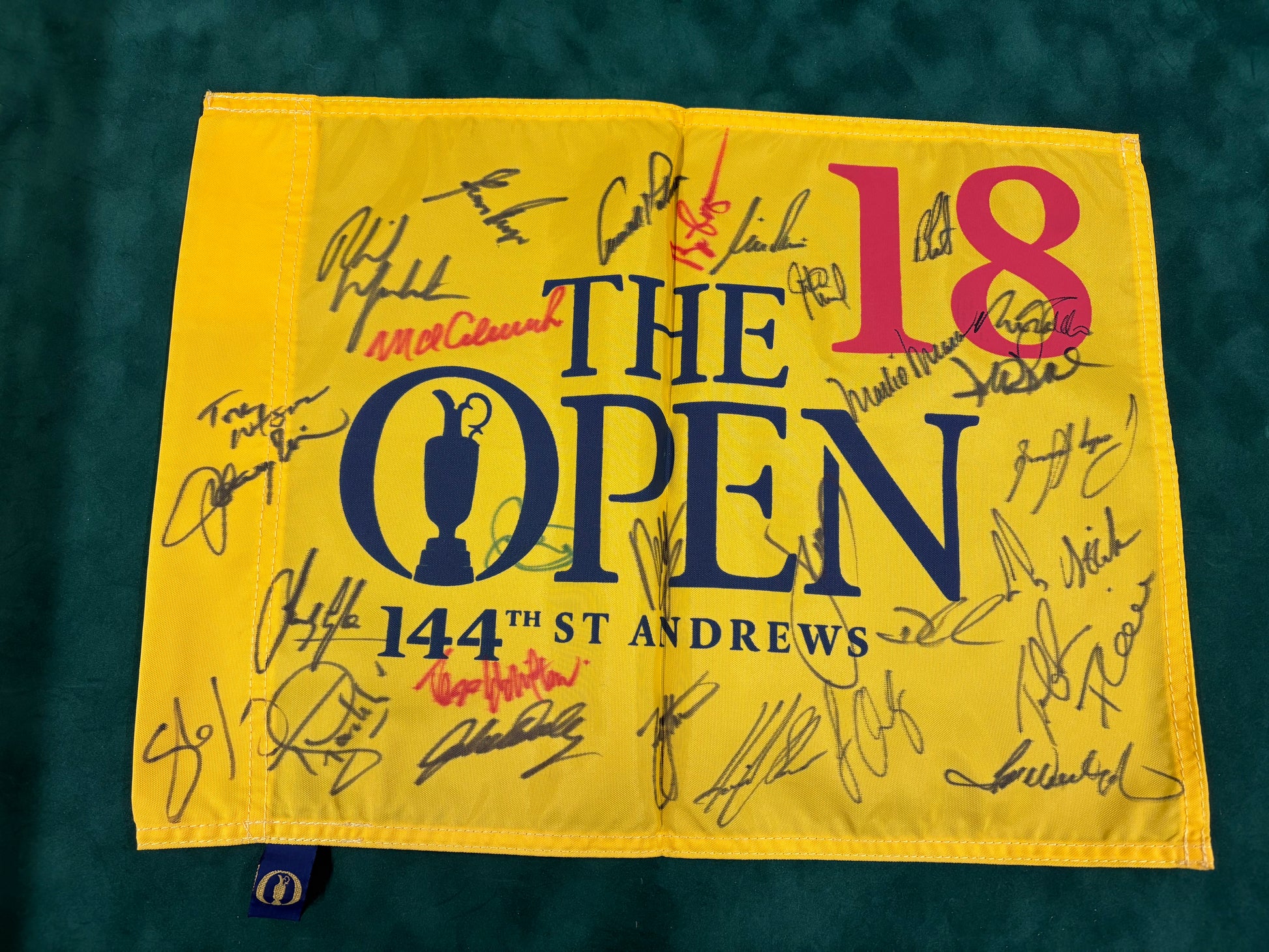 On offer here is 144th Open at St Andrews Golf Flag signed by 31 Winners