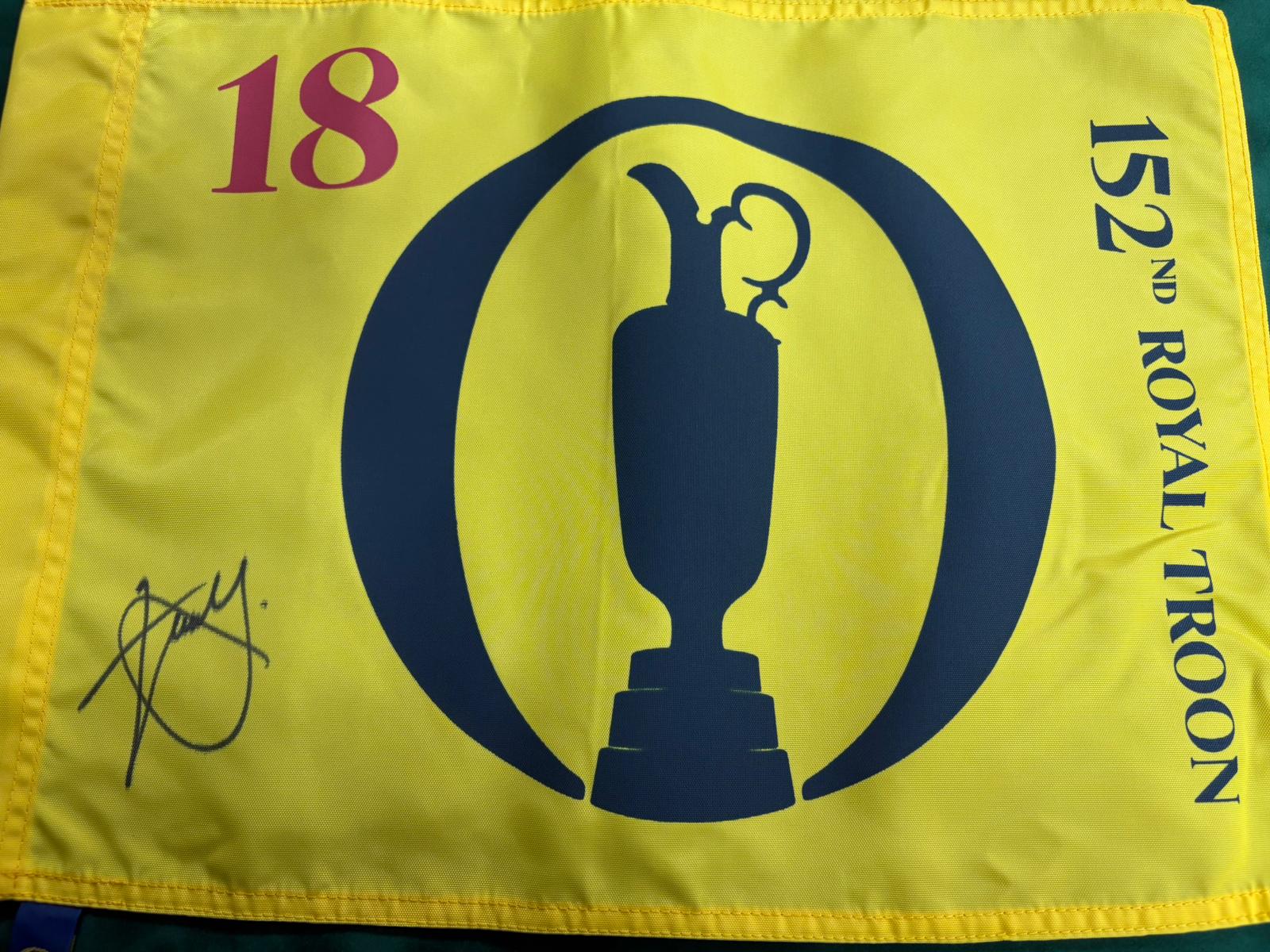 152nd Open at Royal Troon Golf Flag Signed by Winner Xander Schauffele + Dealer COA