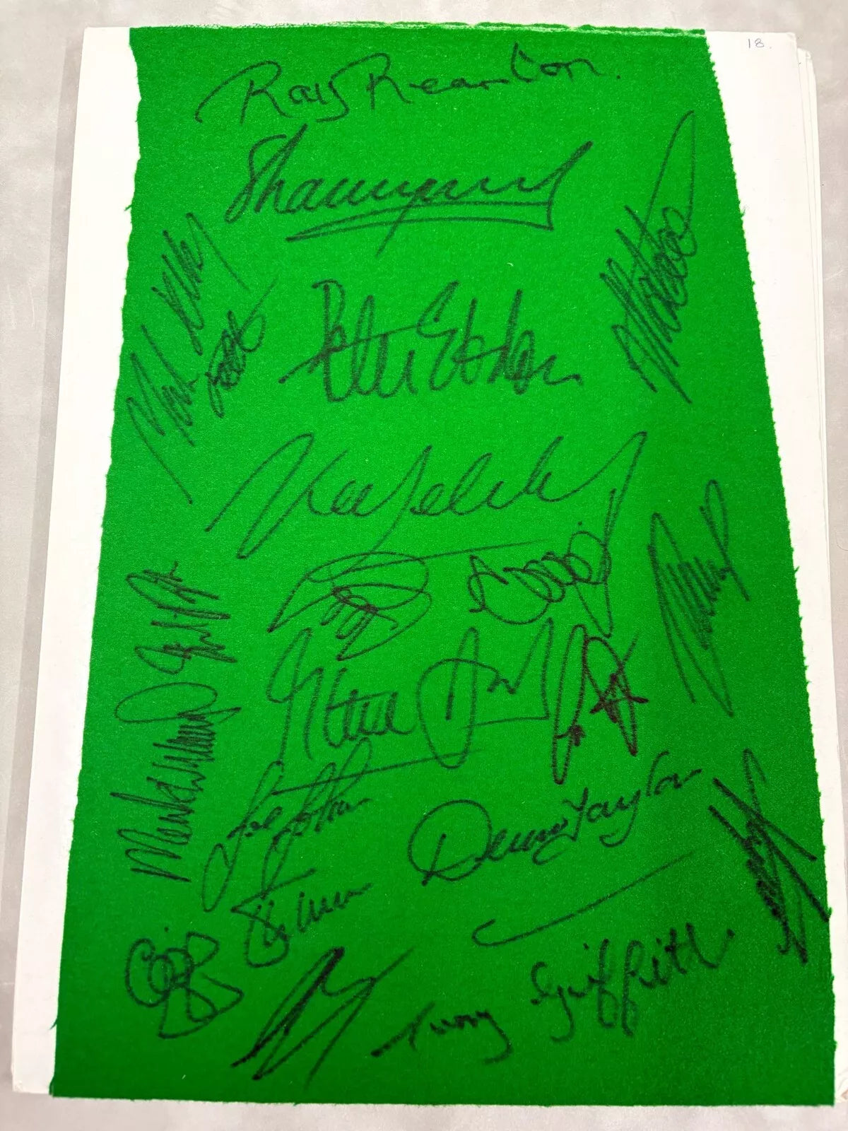 On offer here is a signed Baize Cloth by 20 Snooker World Champions. They are: