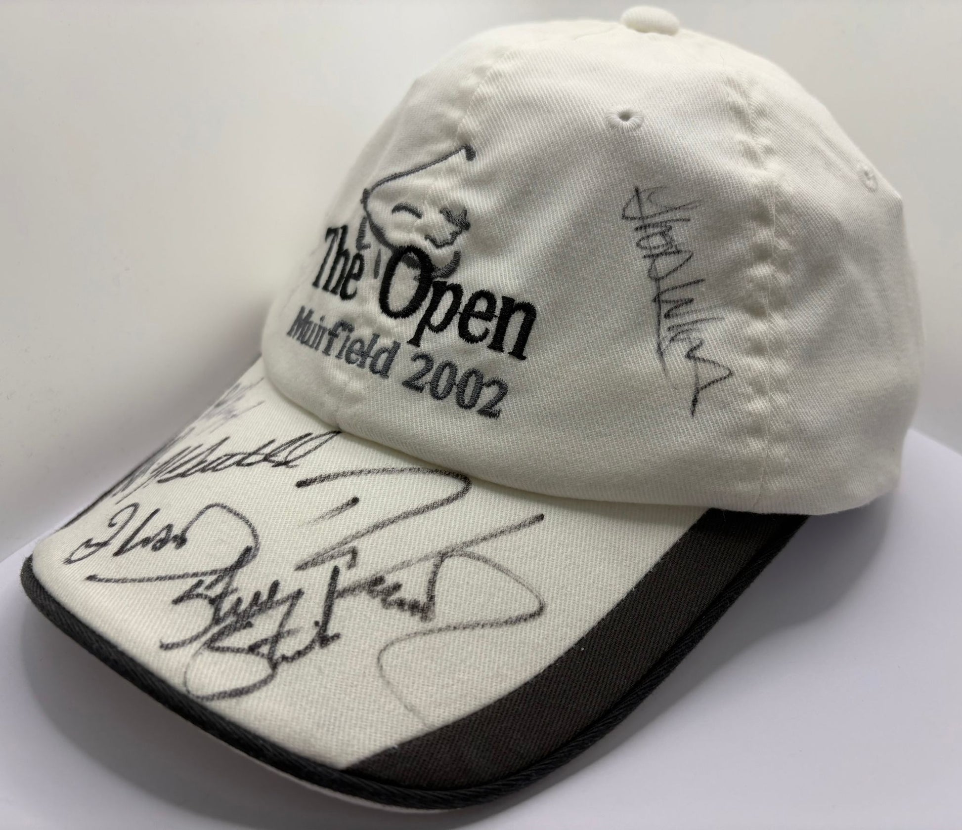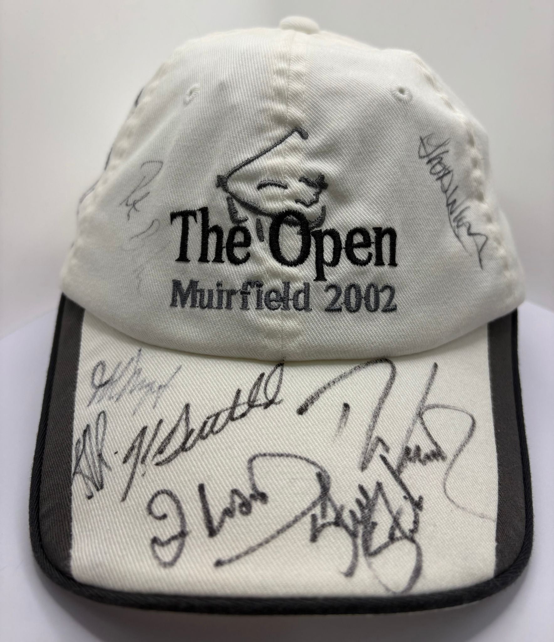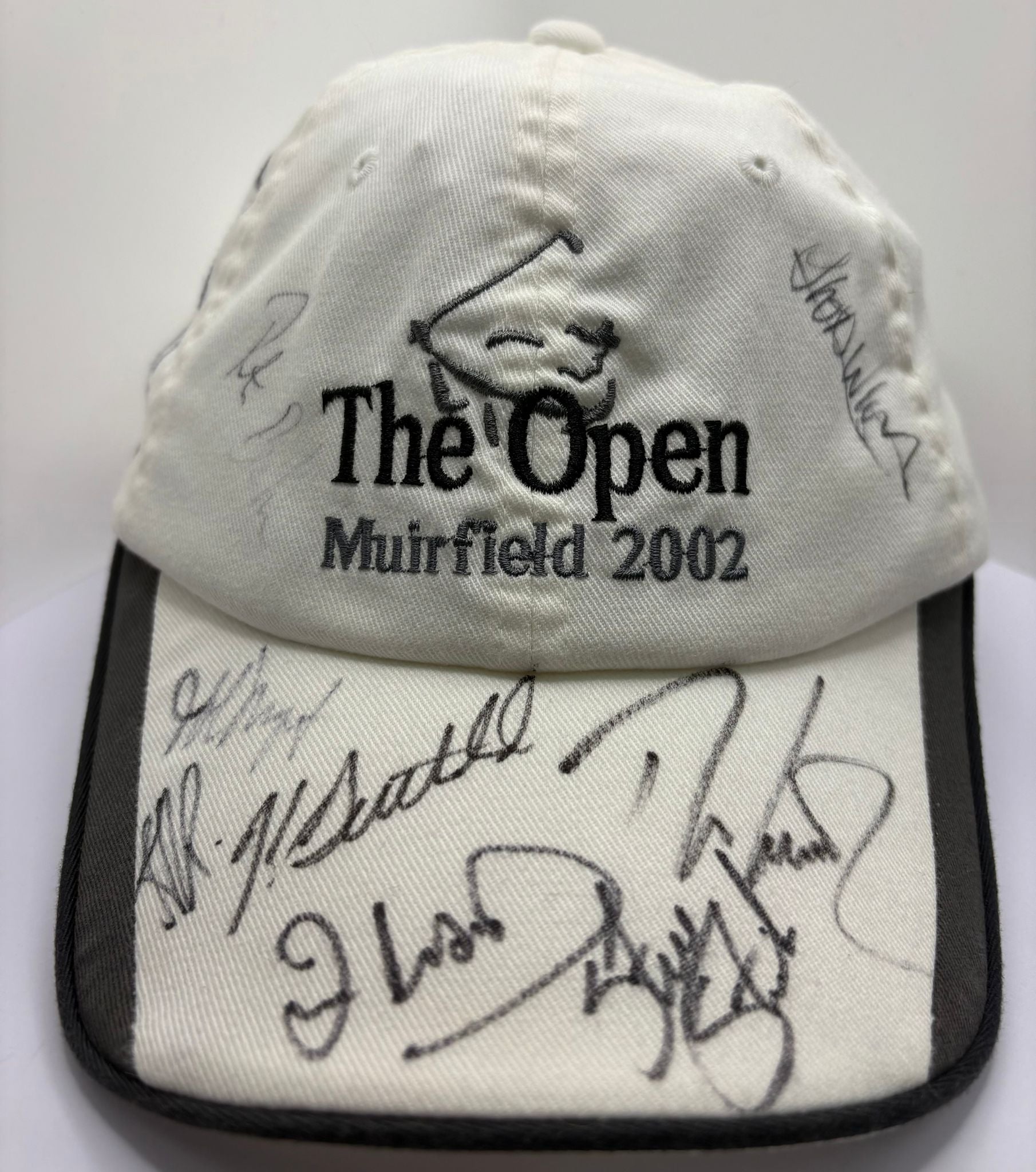 2002 Open at Muirfield Golf Cap Signed by 10 (Langer, Woosnam) + Dealer COA