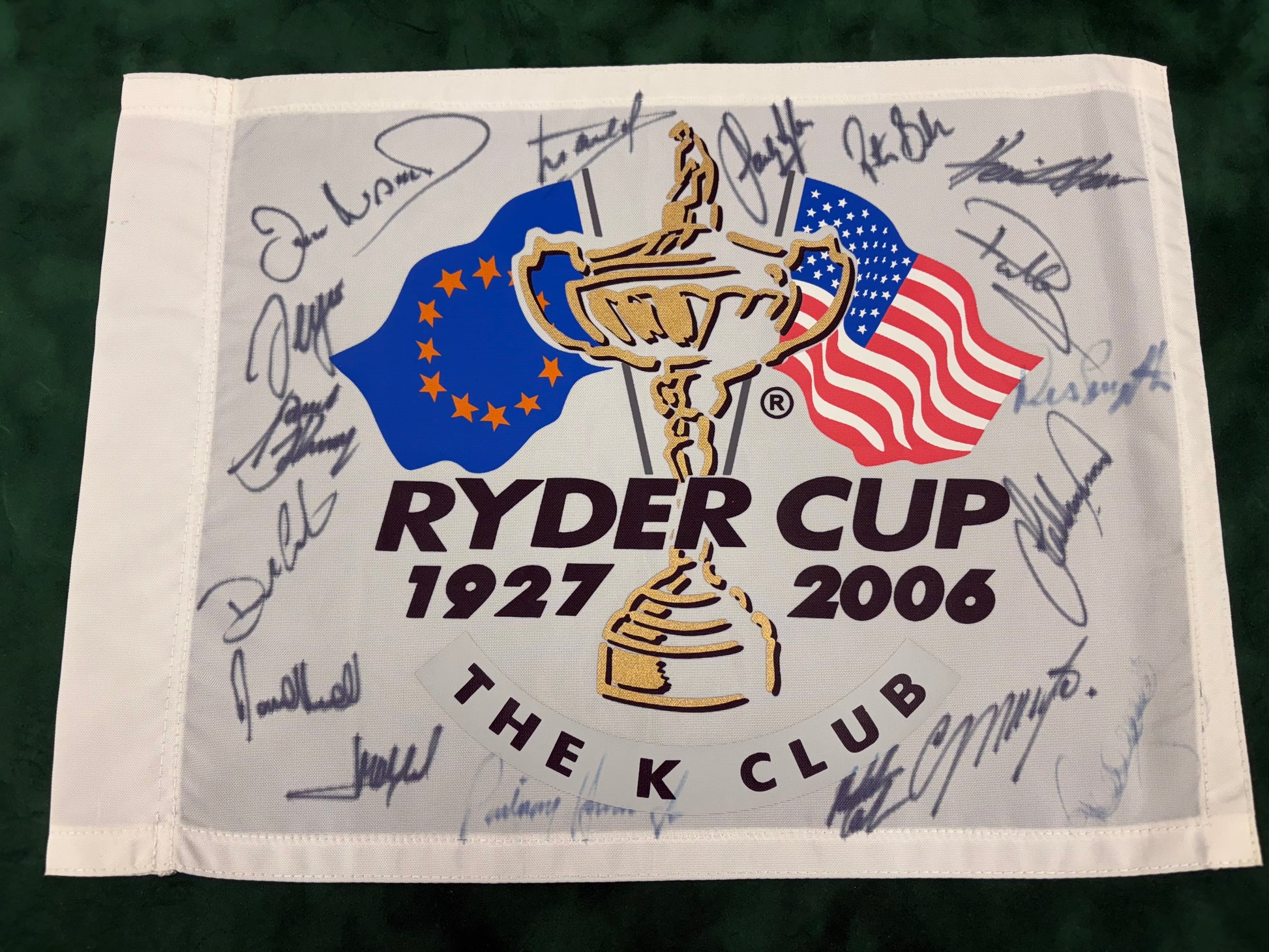 2006 Ryder Cup Team Europe Fully Signed Golf Flag inc Woosnam, Lyle, Casey + COA