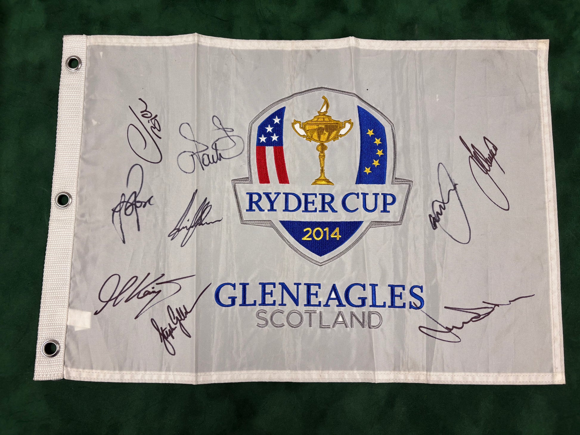 2014 Ryder Cup at Gleneagles Team Europe Signed Golf Flag Westwood, Stenson + COA
