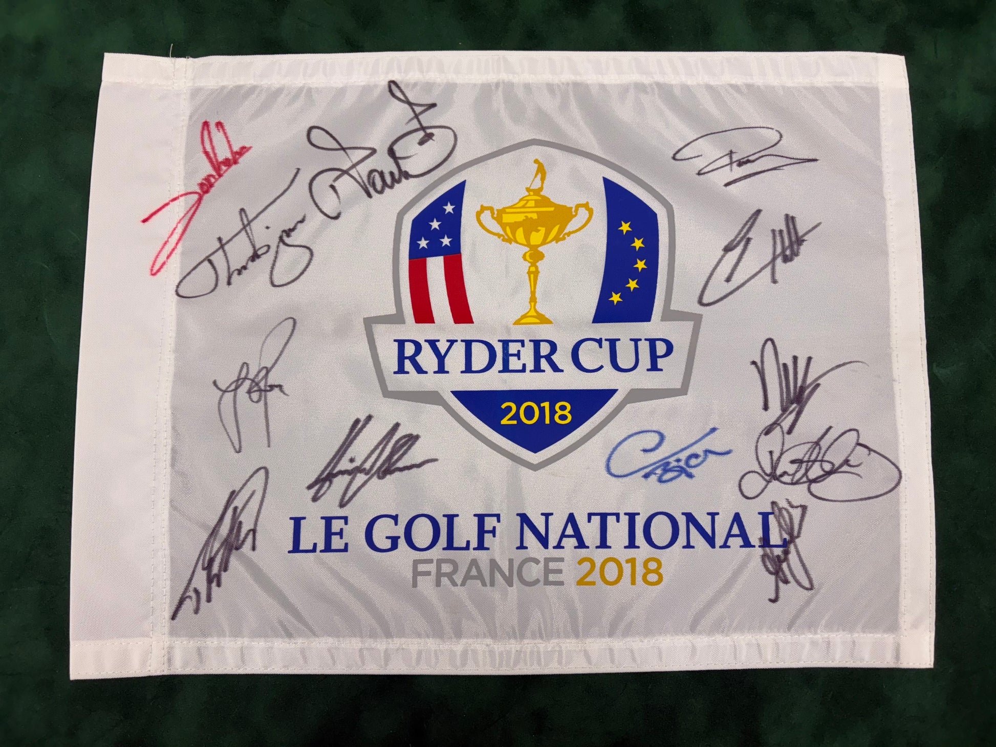 2018 Ryder Cup at Le Golf National Golf Pin Flag Signed by 12 of Team Europe + Cert
