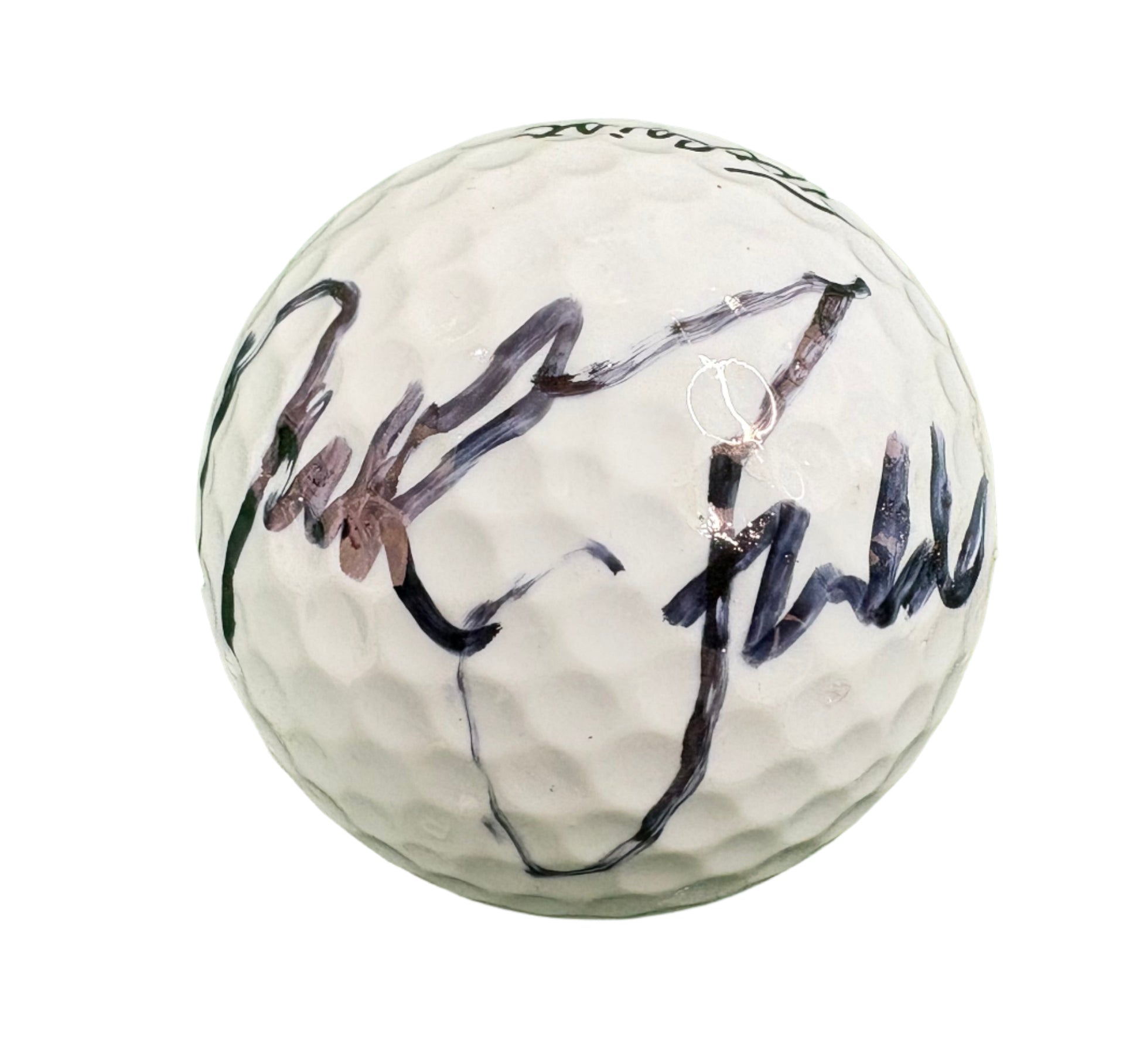 This Titleist golf ball has been personally signed by 6-time major champion, Sir Nick Faldo, and comes with a dealer certificate of authenticity. Enhance your collection with this unique and valuable piece, showcasing the signature of a golf legend. Own a piece of golf history with this exclusive item.