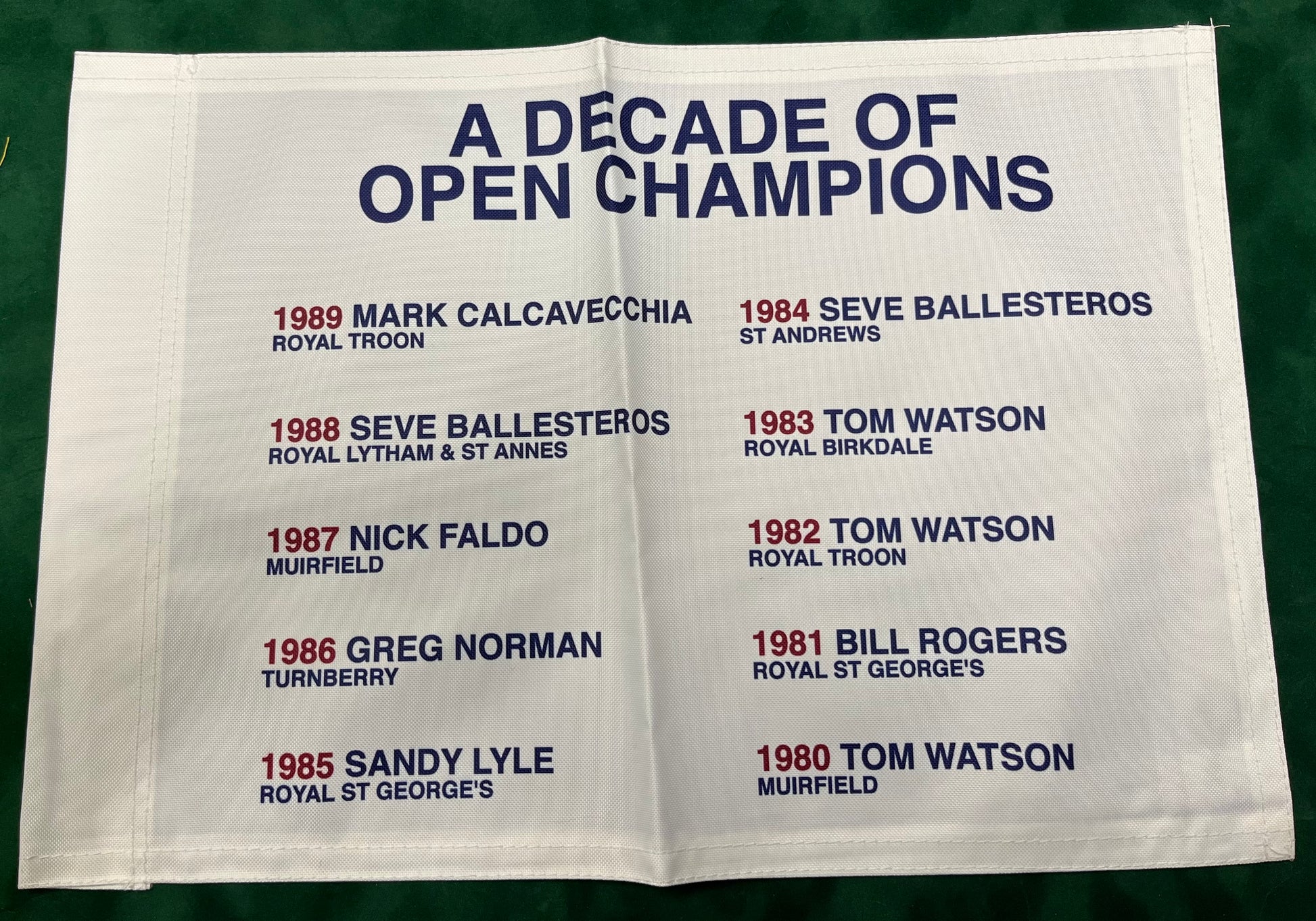 A Decade of Open Champions (1980-1989) Unsigned Golf Flag (White)