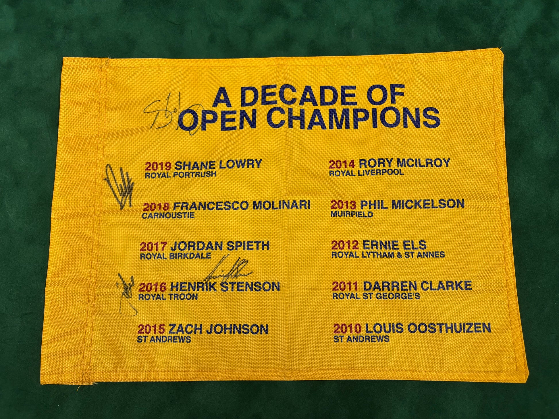 A Decade of Open Champions 2010-2019 Golf Pin Flag Signed by Lowry, Molinari, Stenson, Spieth + Cert