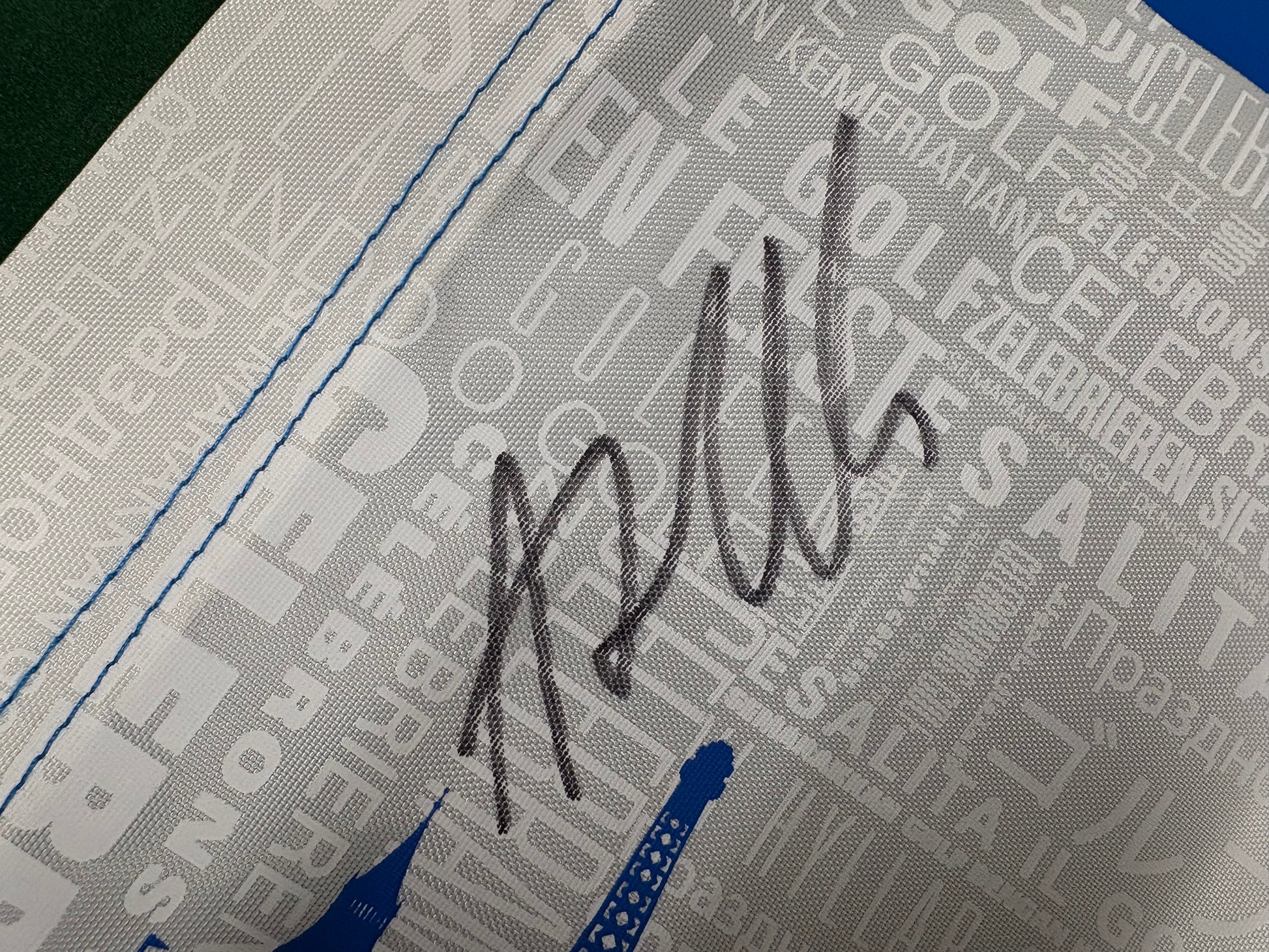 This European Tour golf pin flag, signed by fan favourite Andrew 'Beef' Johnston, comes with a dealer COA. Show your love for the game with this unique and authentic piece.