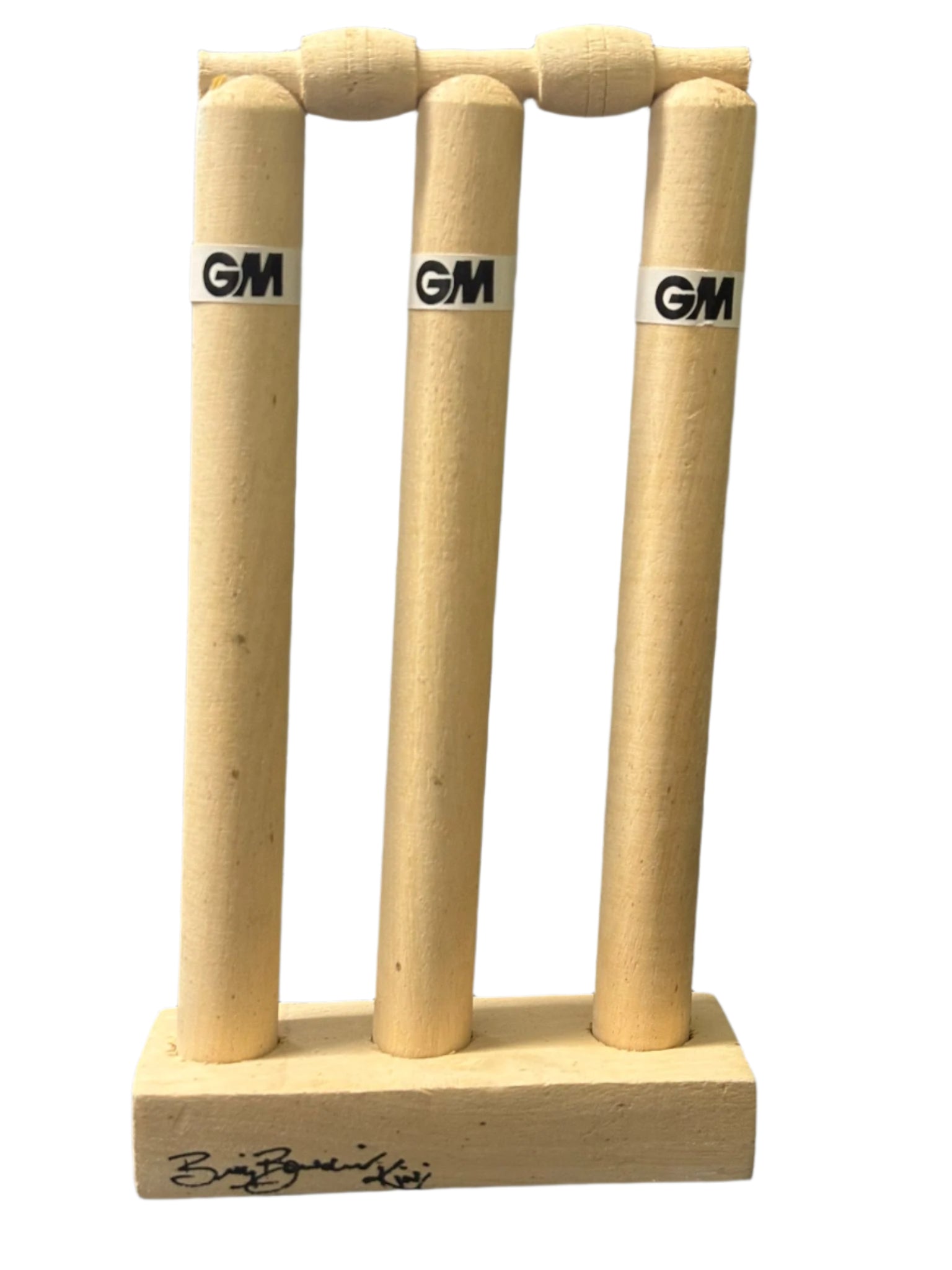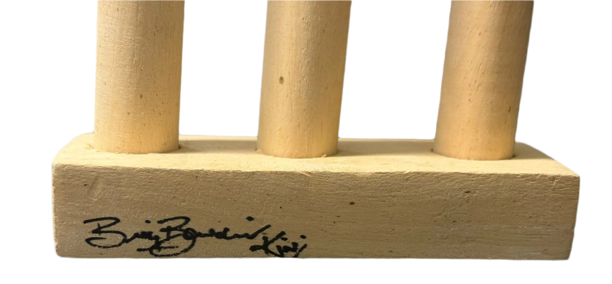These mini cricket stumps are a must-have for any cricket fan. Hand-signed by the legendary New Zealand umpire, Billy Bowden, they come with a Dealer Certificate of Authenticity for added assurance. Perfect for display or as a collector's item, this unique piece is a testament to the expertise and legacy of the sport.