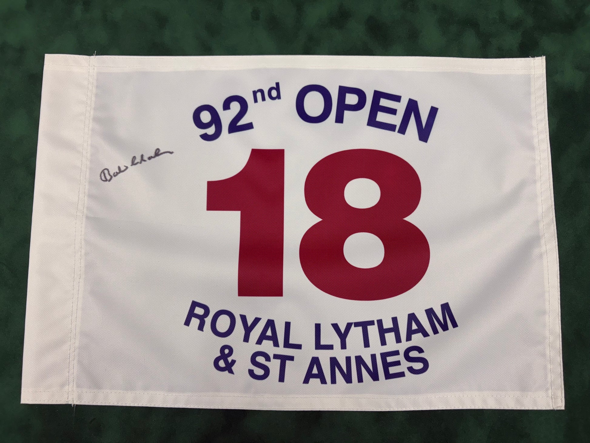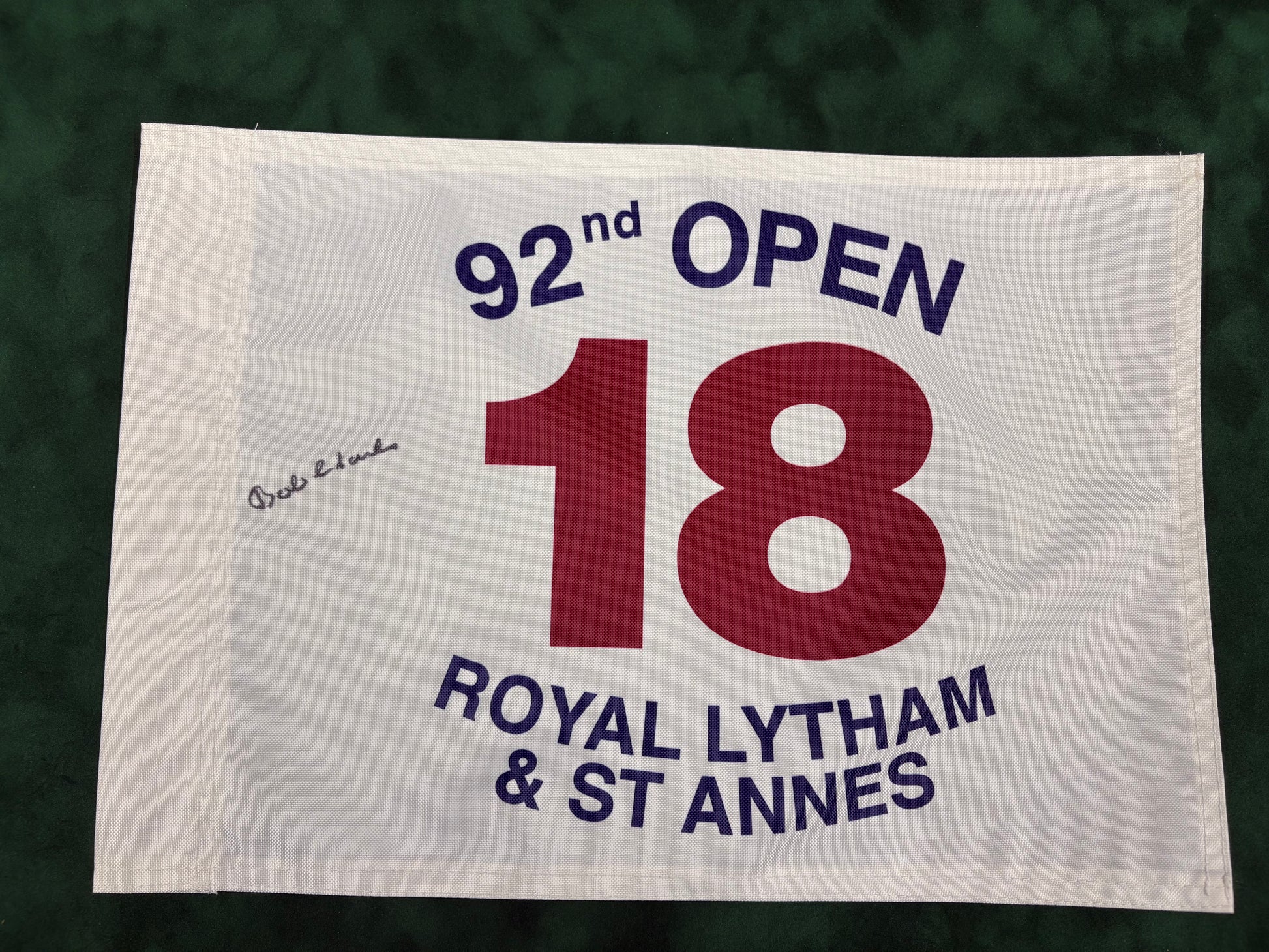 Bob Charles Winner Signed 92nd Open at Royal Lytham & St Annes Golf Flag + Dealer COA