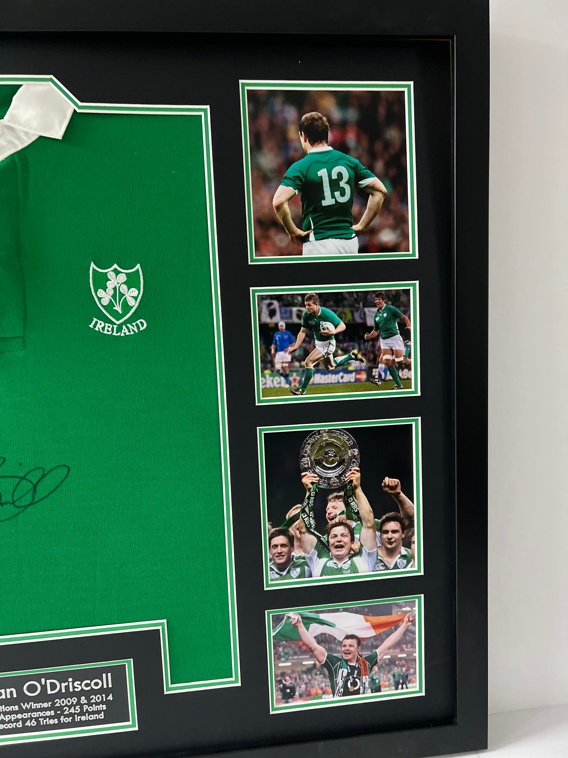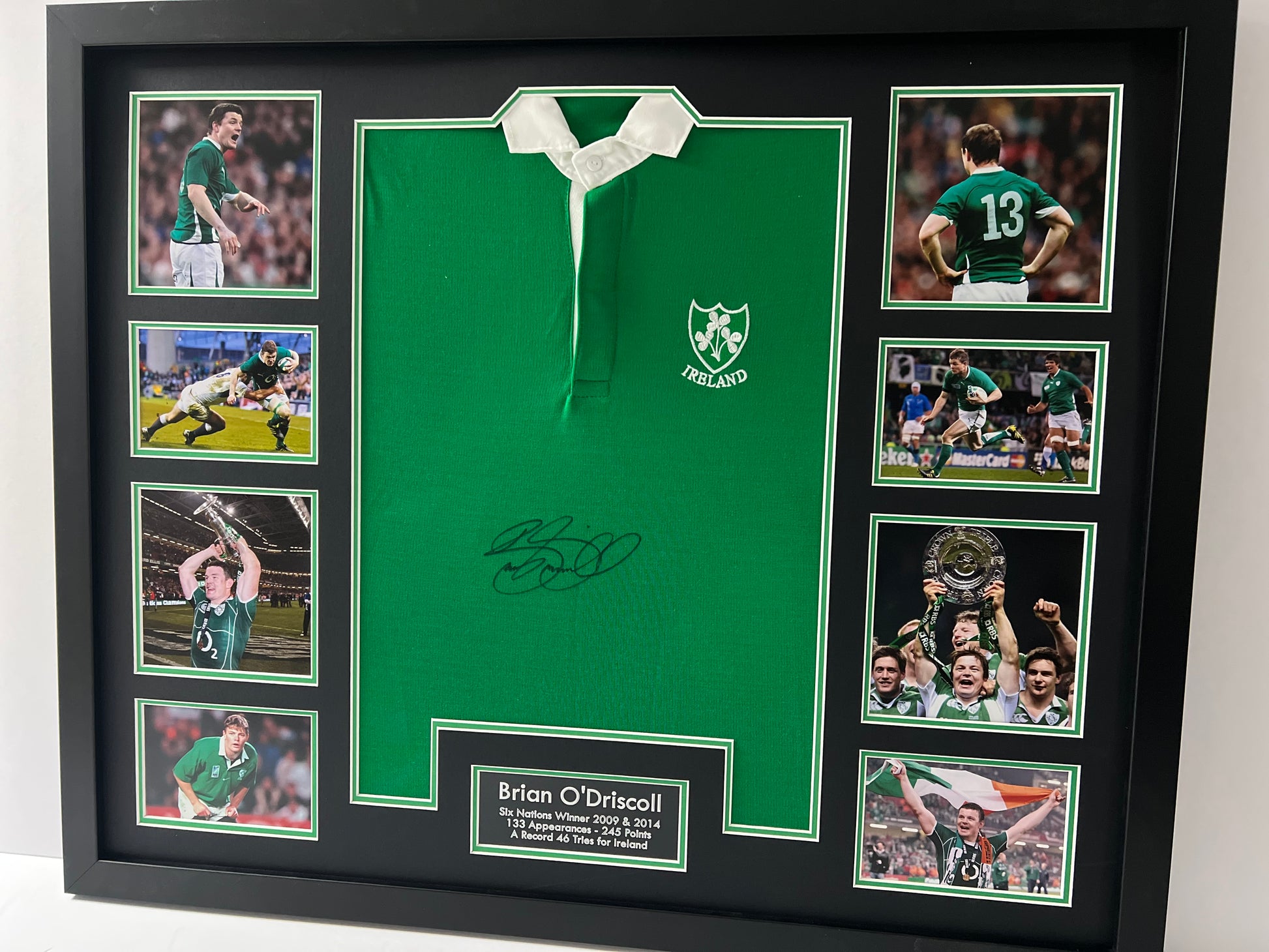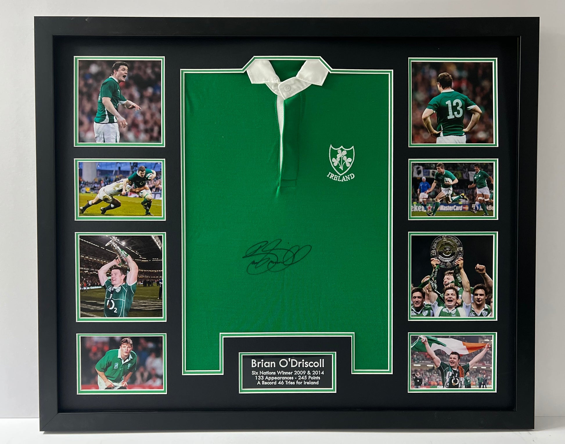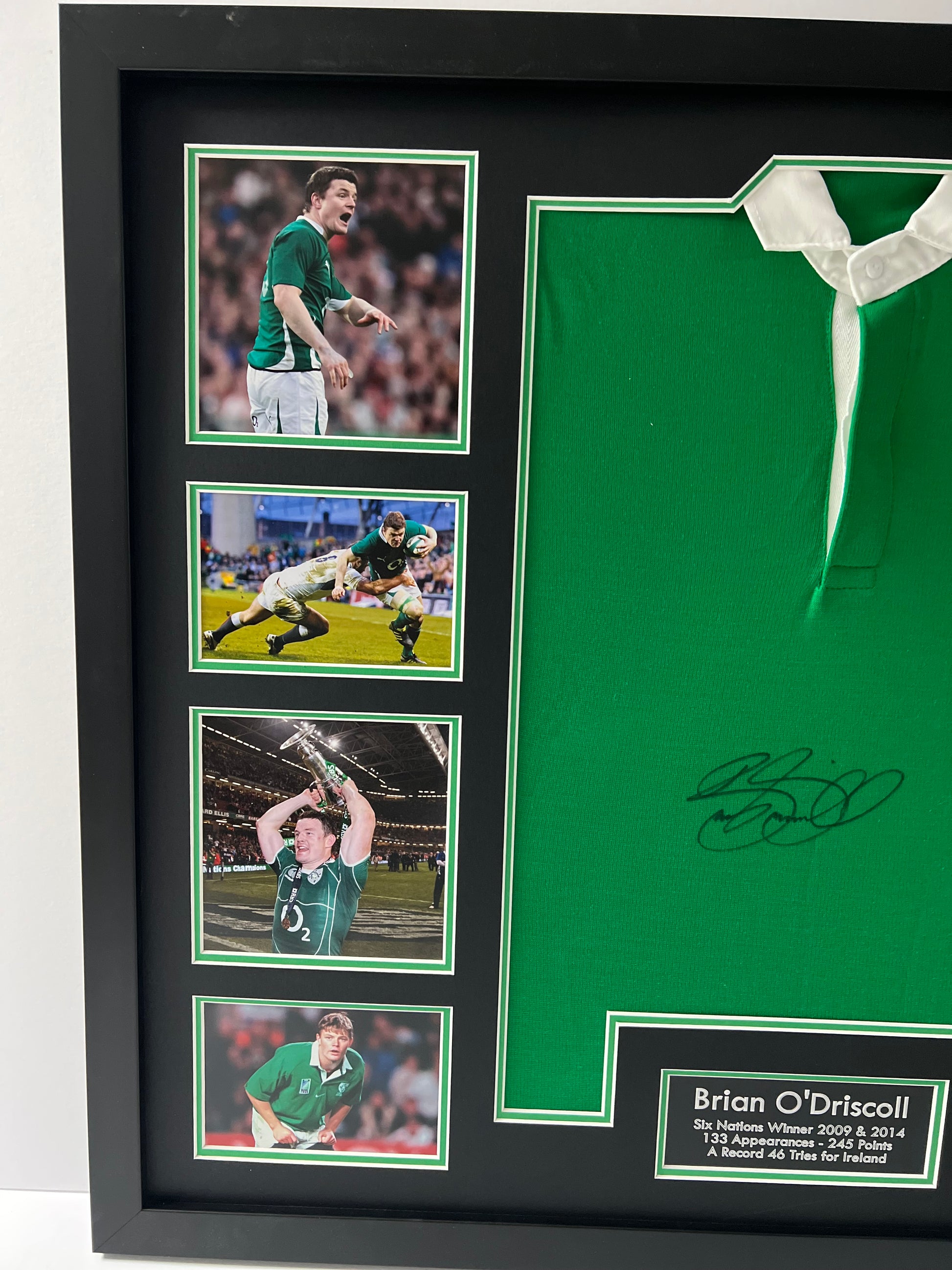 Show off your love for Irish rugby with this framed shirt featuring the signature of the legendary Brian O'Driscoll. This certified, limited edition piece is an essential addition to any fan's collection. Celebrate the sport and Irish pride with this exclusive piece.