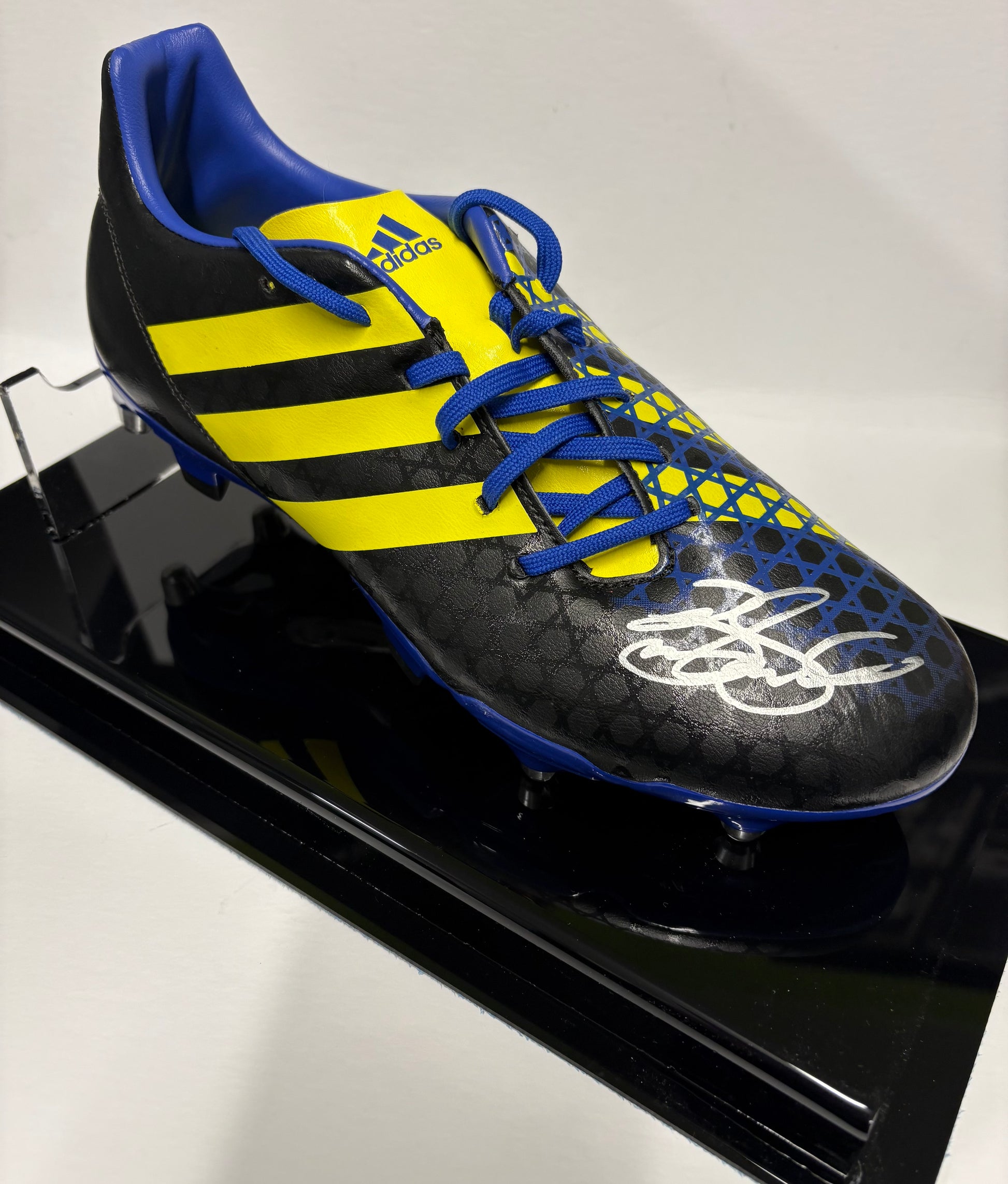 Brian O'Driscoll Signed Black & Yellow Adidas Rugby Boot In Acrylic Case with COA