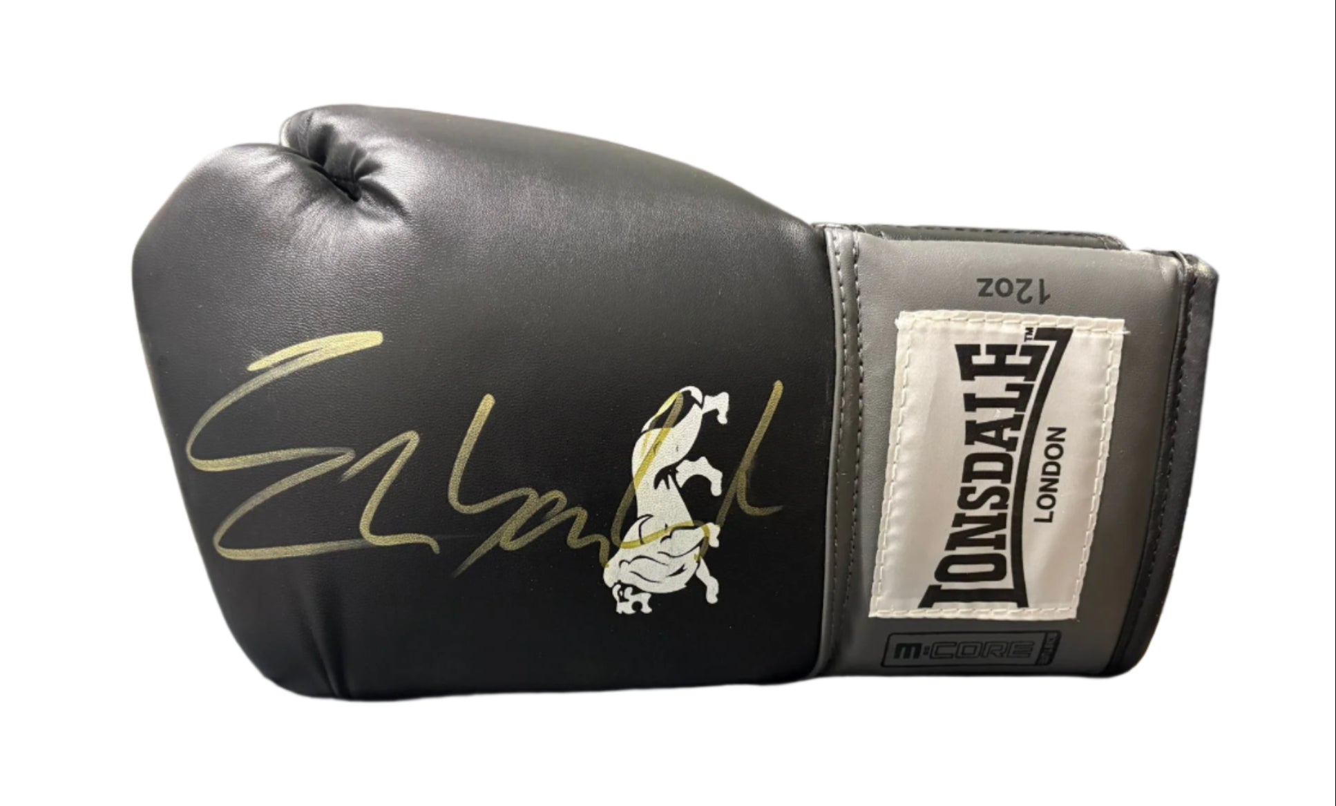 As a two-time IBO Super Middleweight Boxing Champion, Chris Eubank Jnr is a force to be reckoned with in the ring. This signed Lonsdale boxing glove, accompanied by a certificate of authenticity, is a prized possession for any boxing fan.