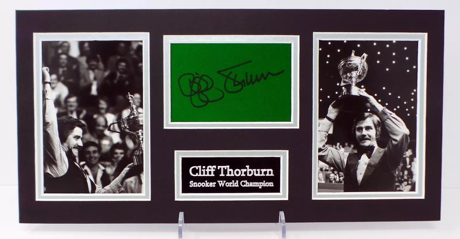 Cliff Thorburn Signed World Snooker Champion Green Baize Display with COA