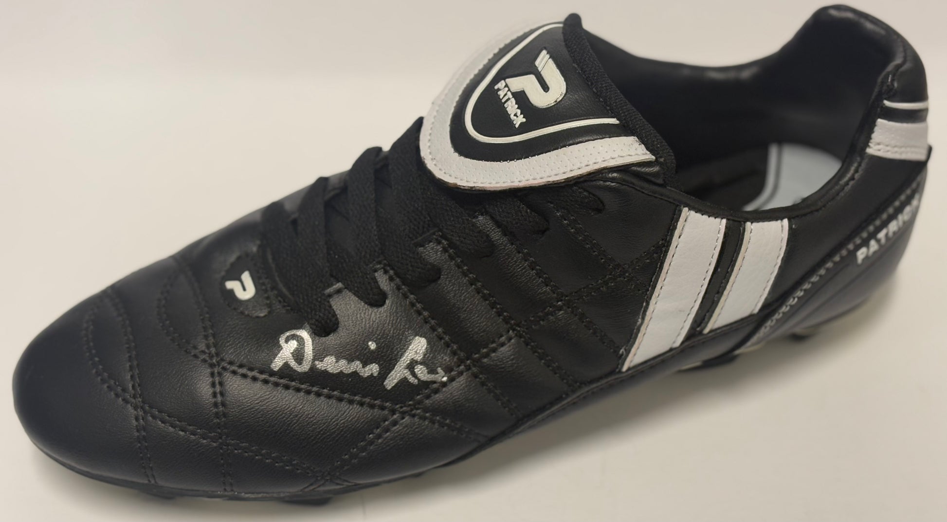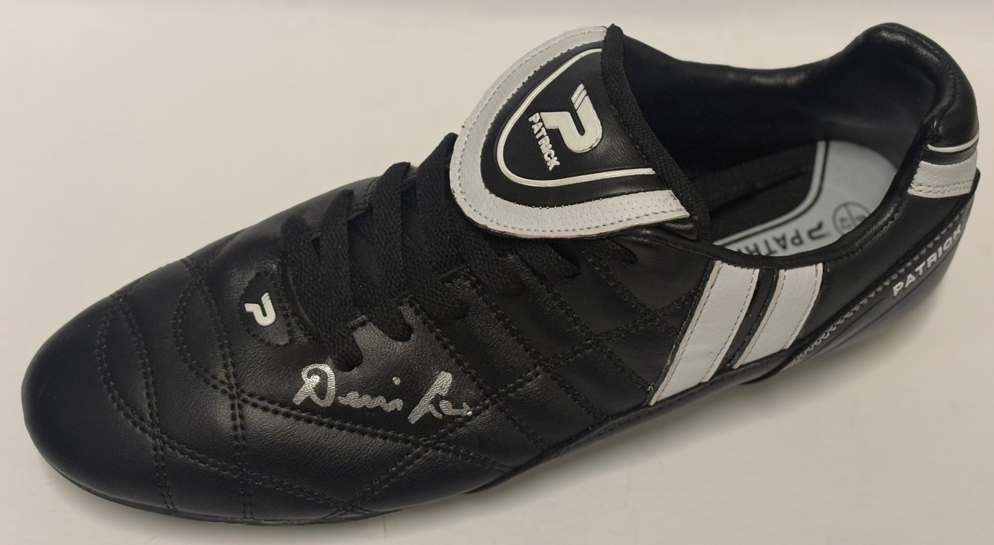 Denis Law- Manchester United FC Signed Black & White Football Boot with COA