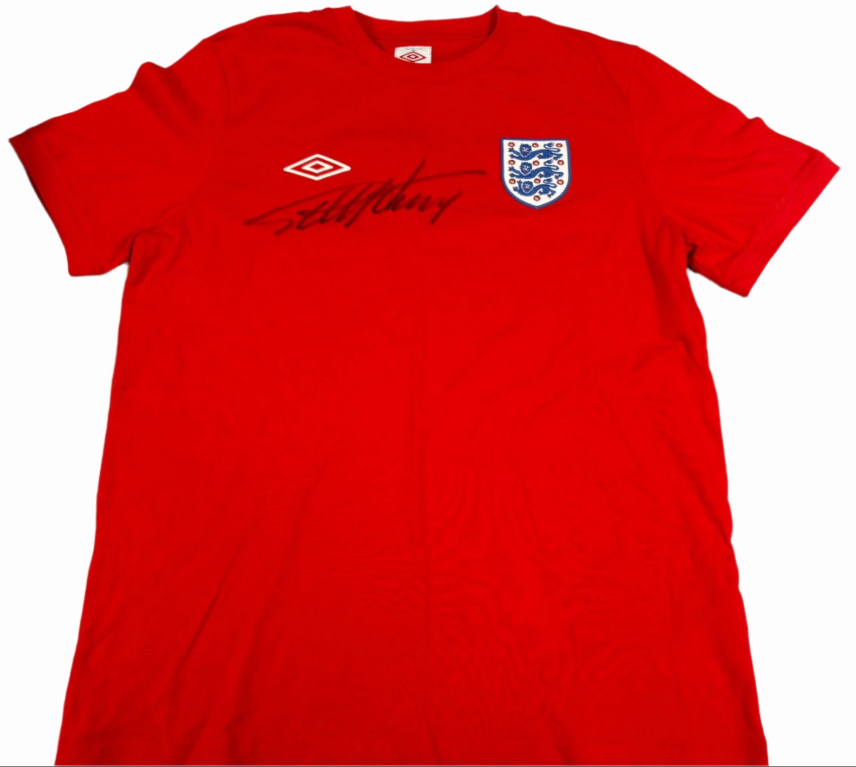 England 1966 World Cup Final Retro Style T-Shirt Signed by Geoff Hurst + COA