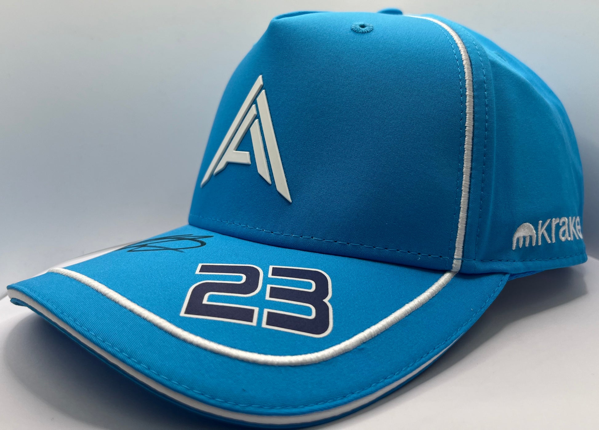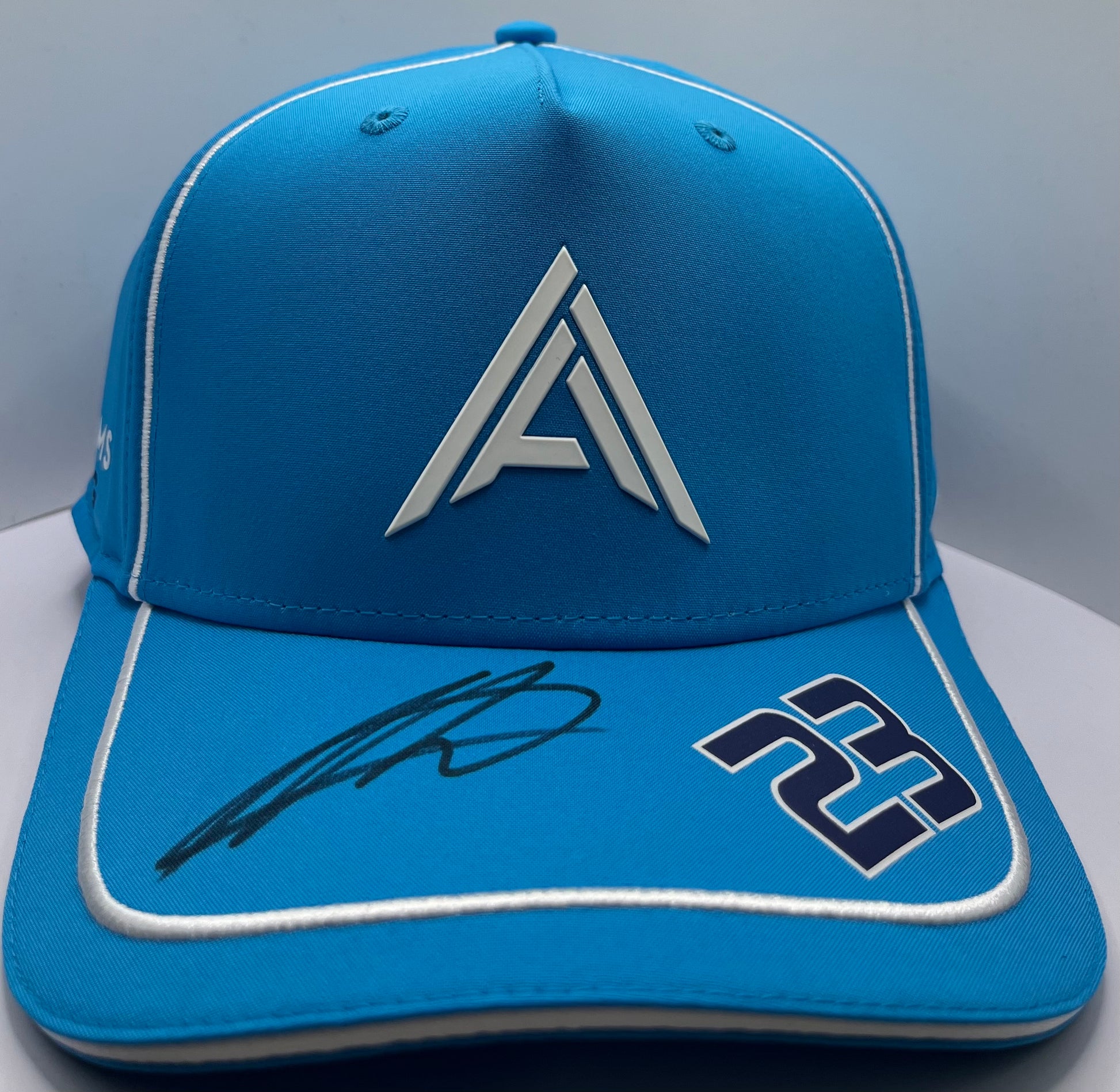 Get your hands on a piece of Formula One history with this signed blue & white F1 cap from Williams Racing Driver Alex Albon. Made with high-quality materials, this cap showcases Alex Albon's signature and comes with a Certificate of Authenticity for added assurance. Show your support for your favourite driver with this collectible item.