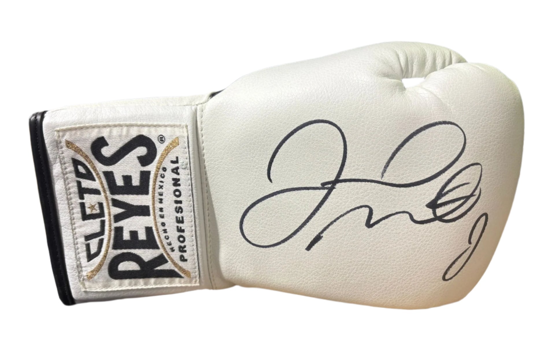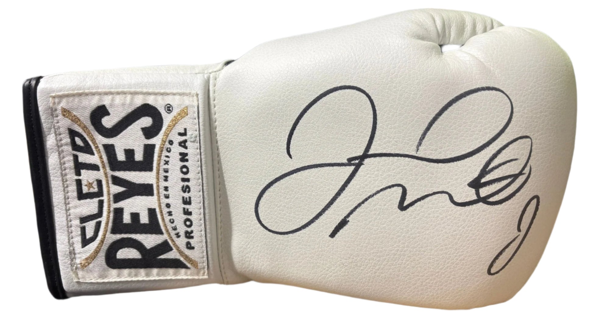 This Floyd Mayweather Jr signed white Cleto Reyes right boxing glove comes with a dealer COA. Perfect for any boxing fan or collector, this glove showcases the skill and expertise of the undefeated champion.