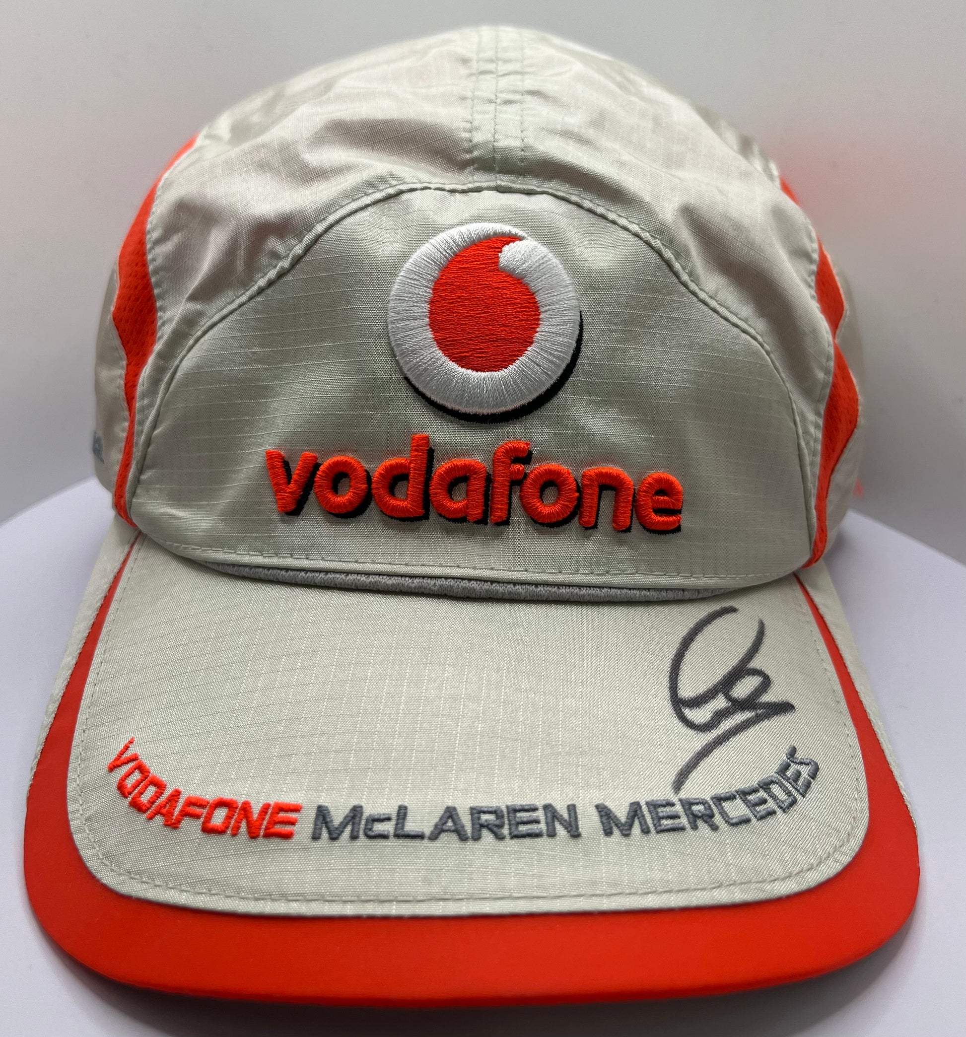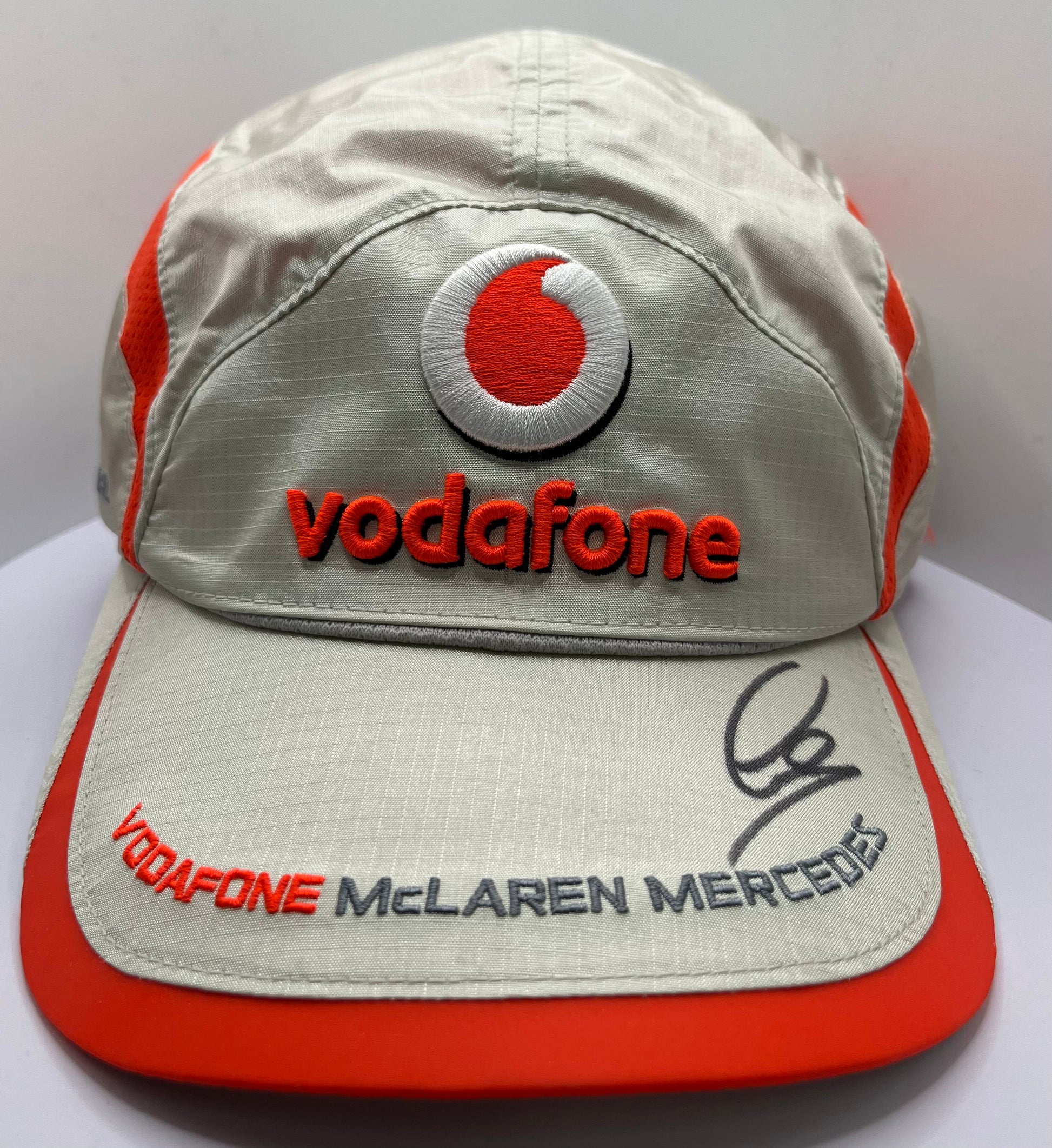 Formula One Legend Lewis Hamilton Signed Vodafone McLaren Mercedes Silver & Orange F1 Cap with COA