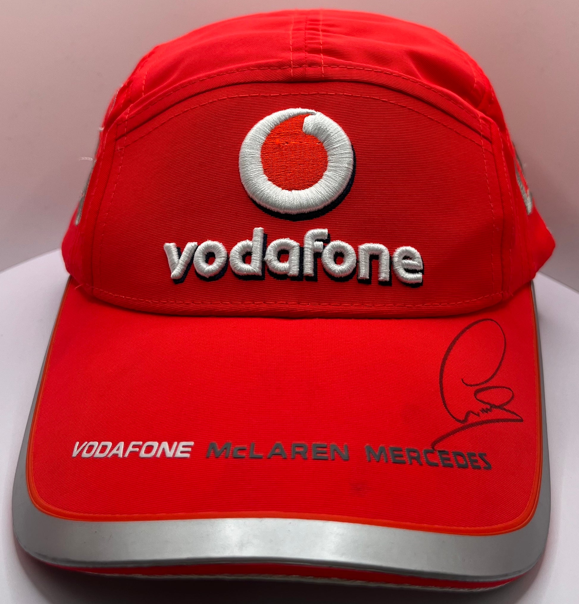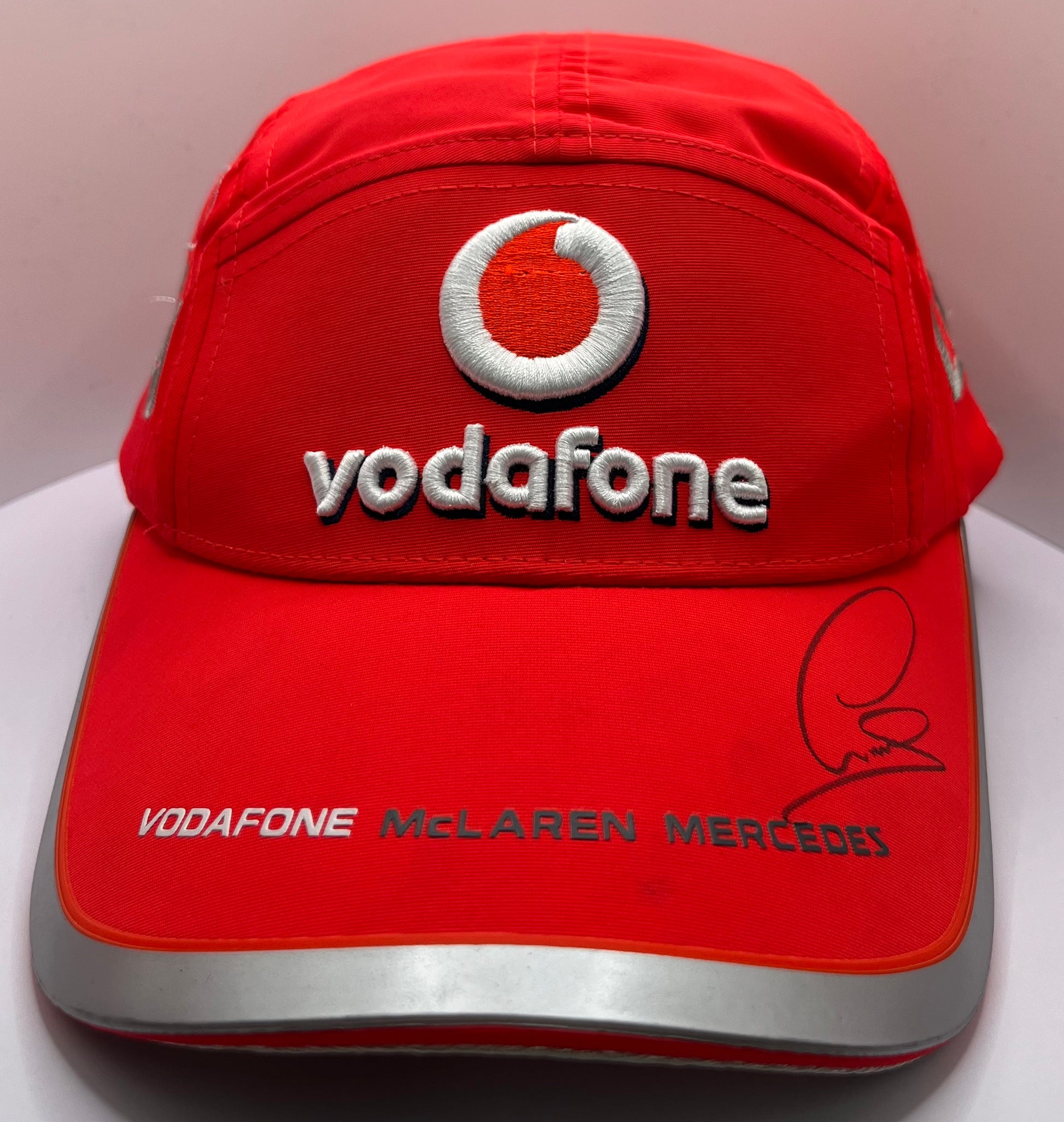 Formula One Legend Lewis Hamilton Signed Vodafone McLaren Mercedes Red F1 Cap with COA