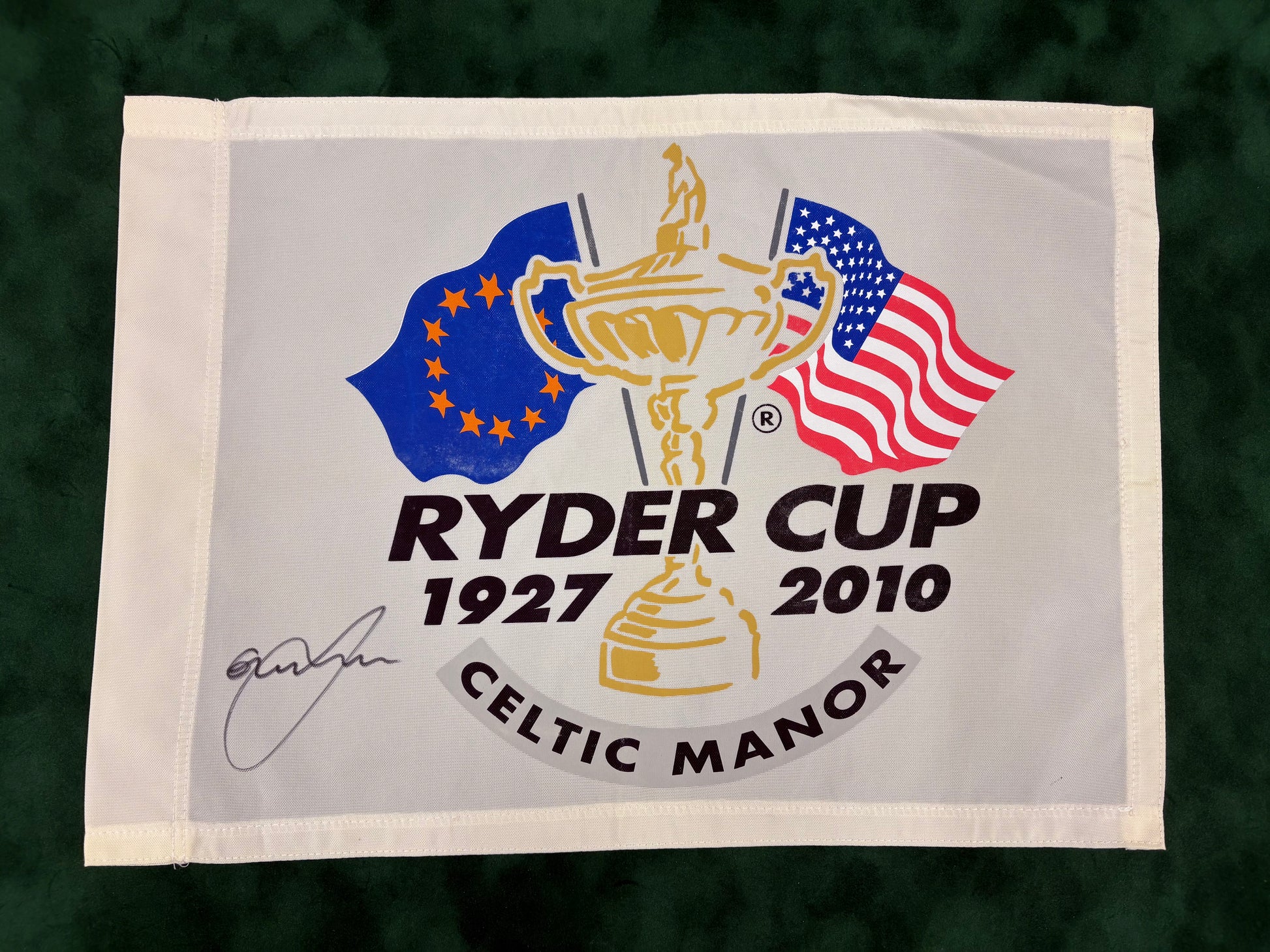 Graeme McDowell Signed 2010 Ryder Cup at Celtic Manor Golf Flag + Dealer COA