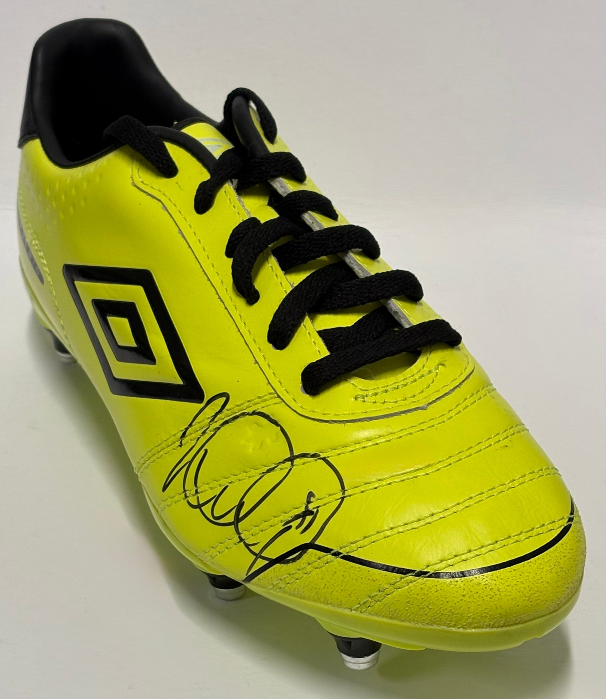 Score a winning goal with this signed yellow Umbro Premio football boot from legendary player Ian Wright. With a certificate of authenticity included, this quirky find is perfect for any sports collector or fan.