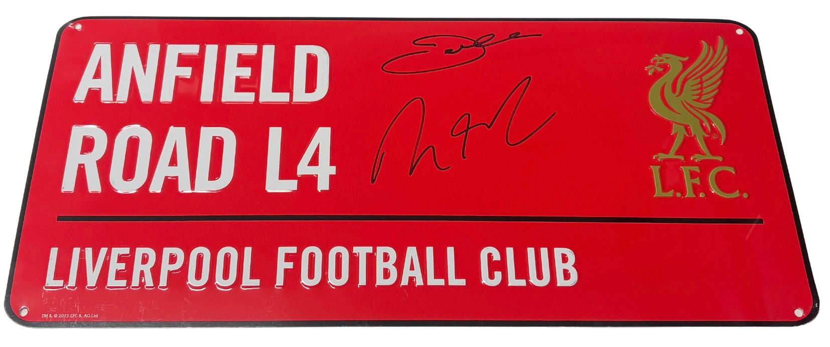 Represent your love for Liverpool FC with this authentic street sign, hand-signed by legendary players Jason McAteer and Robbie Fowler. Comes with a Certificate of Authenticity, making it a valuable addition to any collection. Show your true devotion to the club with this one-of-a-kind piece.