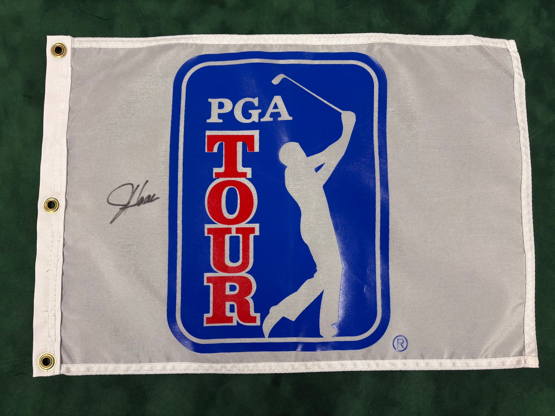 This PGA Tour Golf Pin Flag has been personally signed by American golfer, Jay Haas. The included dealer COA guarantees the authenticity of this collector's item. Add this signed flag to your collection and showcase your admiration for Jay's incredible talent on the green.
