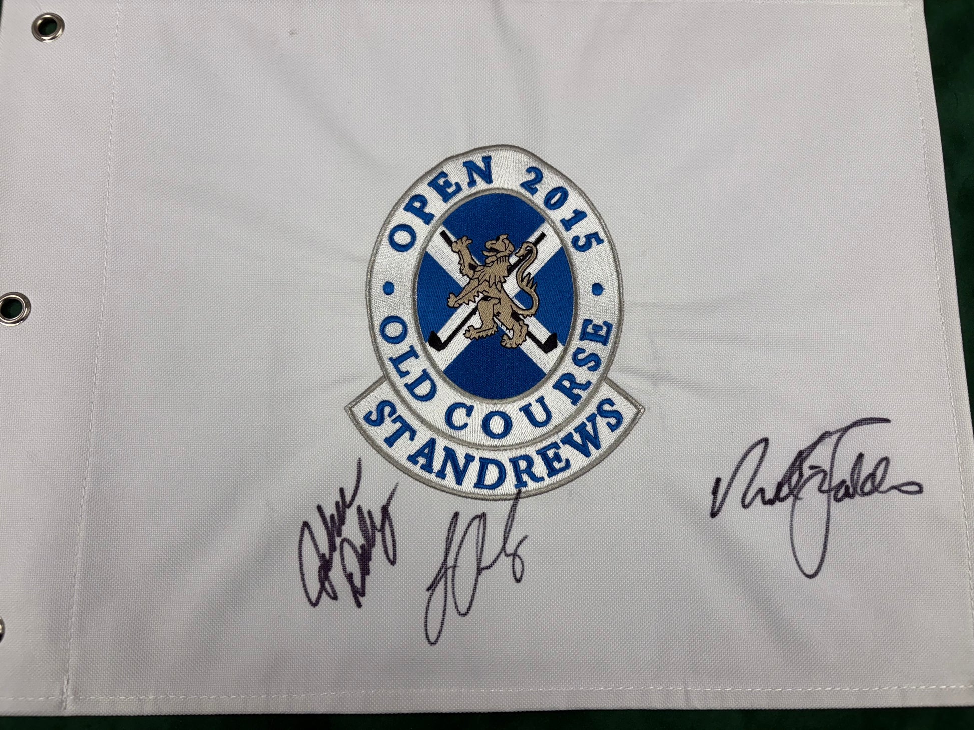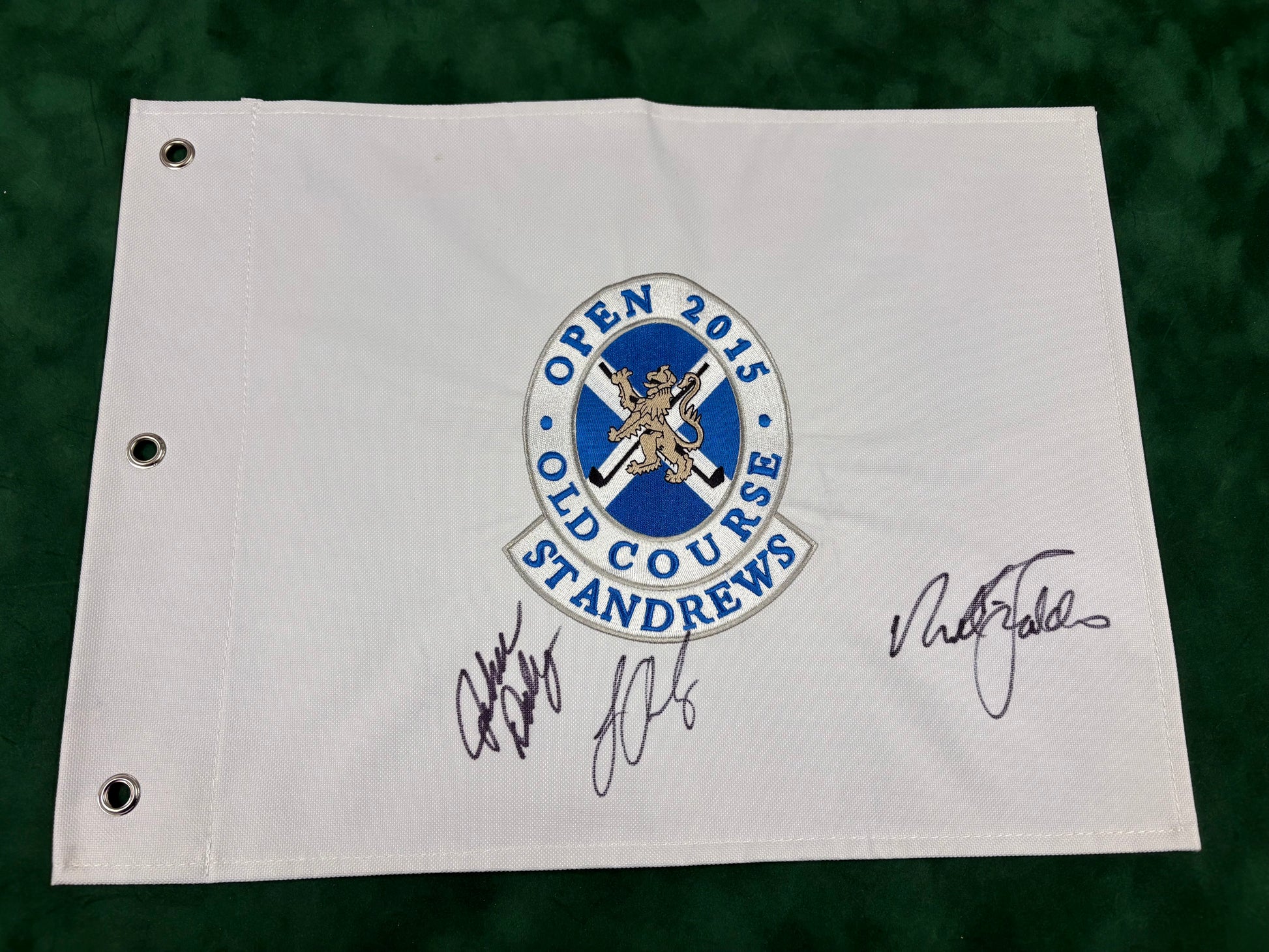 John Daly, Sir Nick Faldo & Louis Oosthuizen Signed 2015 Open at St Andrews Golf Pin Flag + Cert