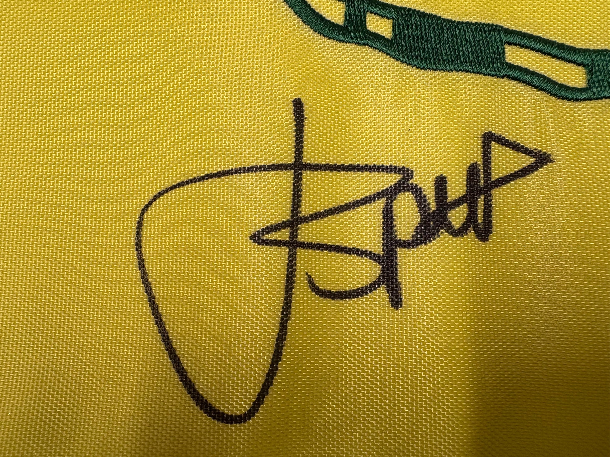 This authentic signed golf flag by Jordan Spieth, winner of the 2015 Masters, comes with a dealer COA. As an expert golfer in the industry, Spieth's signature adds value to any collection. Own a piece of golf history.