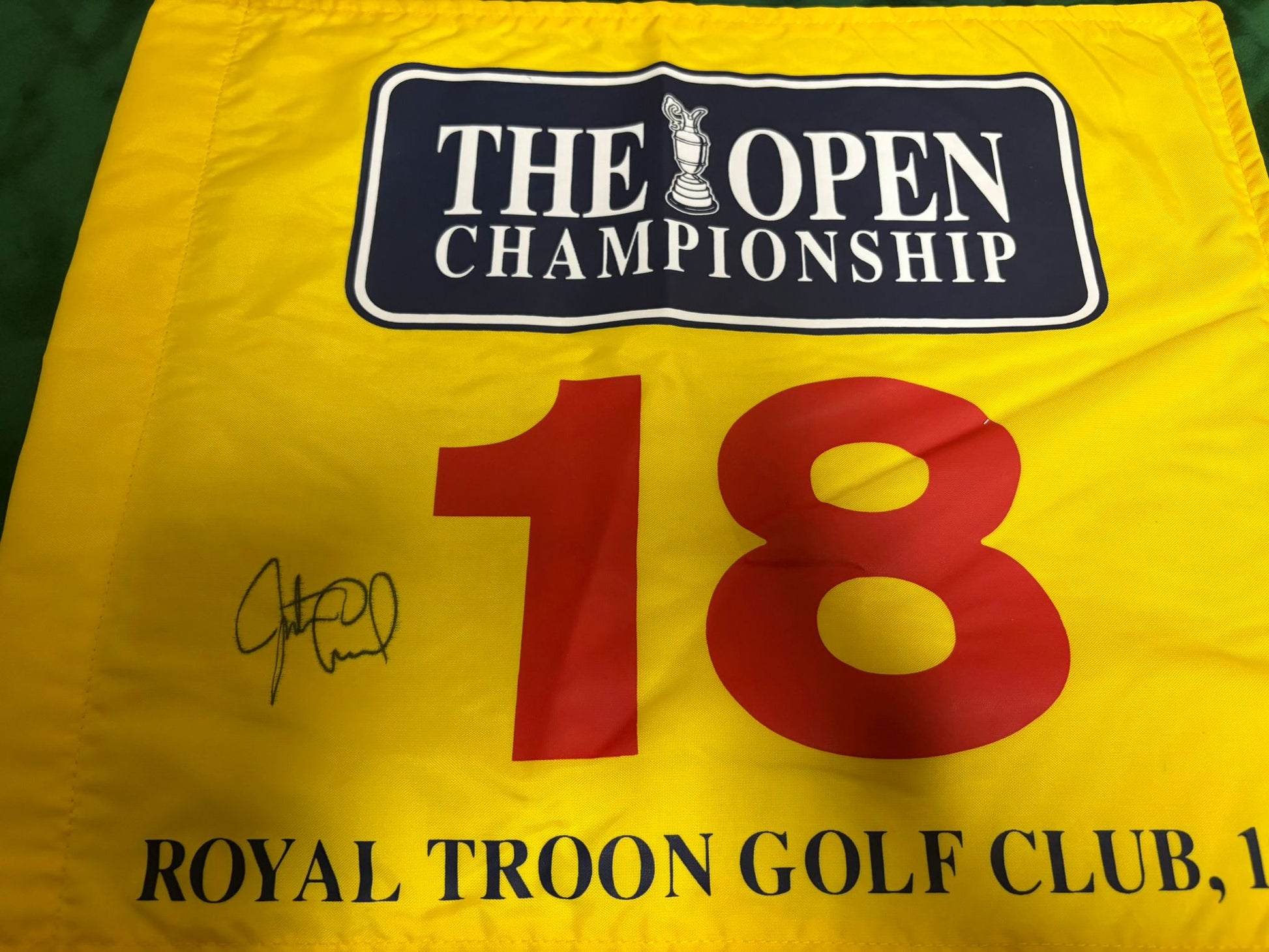 Justin Leonard Winner Signed 1997 Open at Royal Troon Golf Pin Flag + Dealer COA