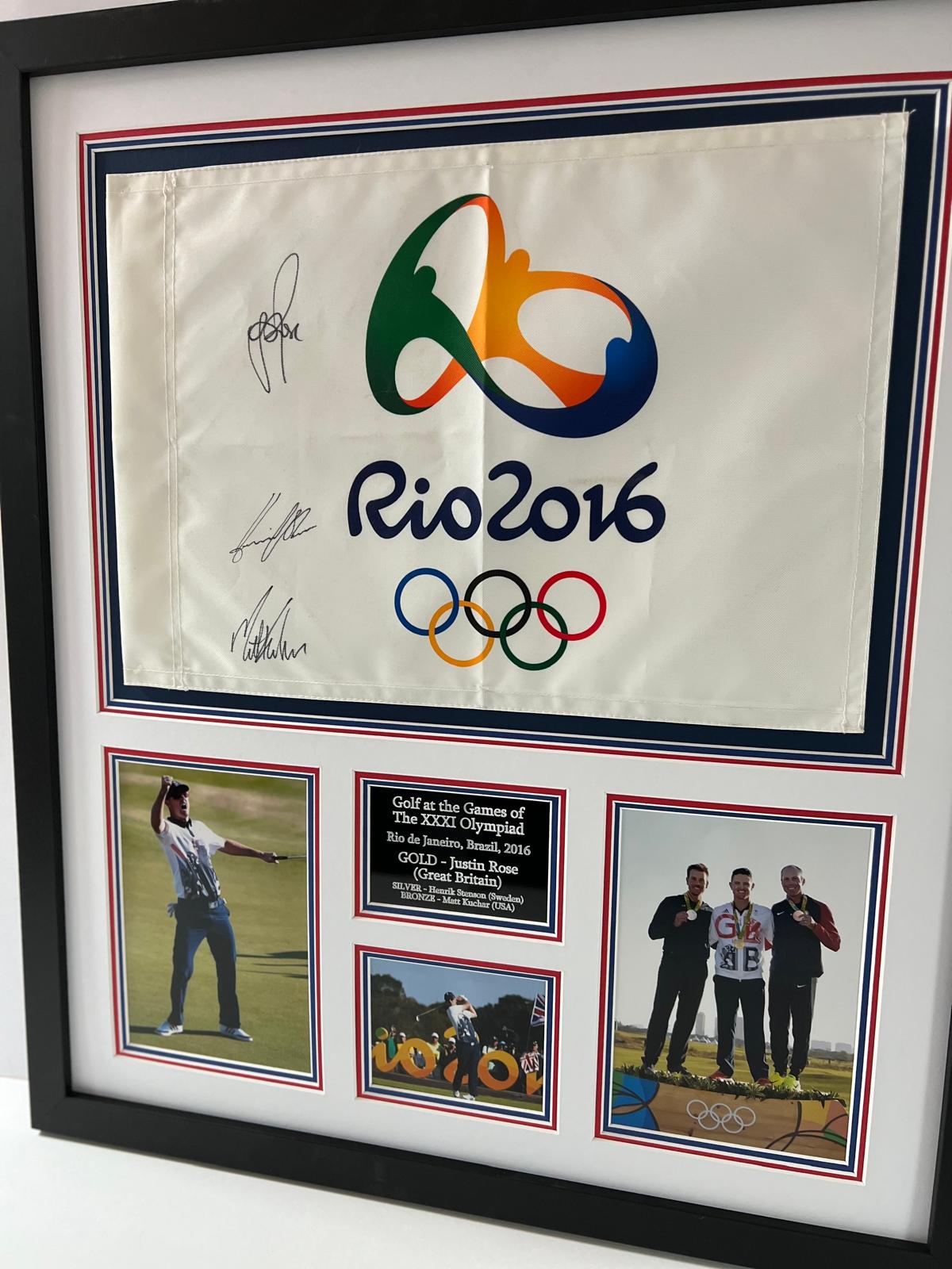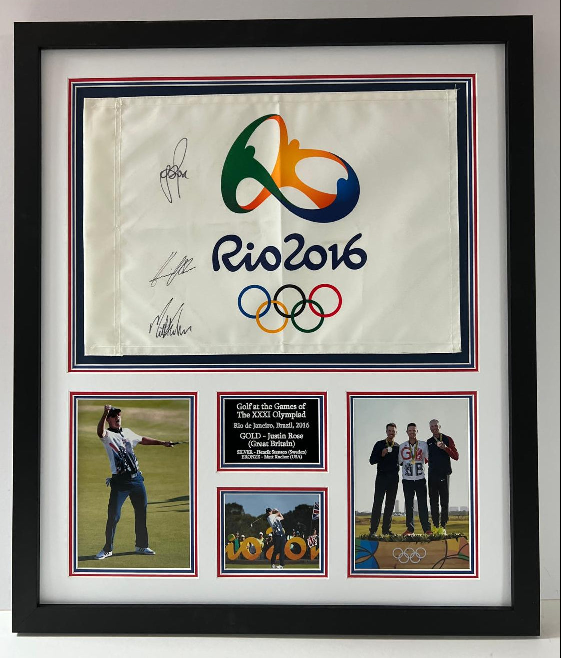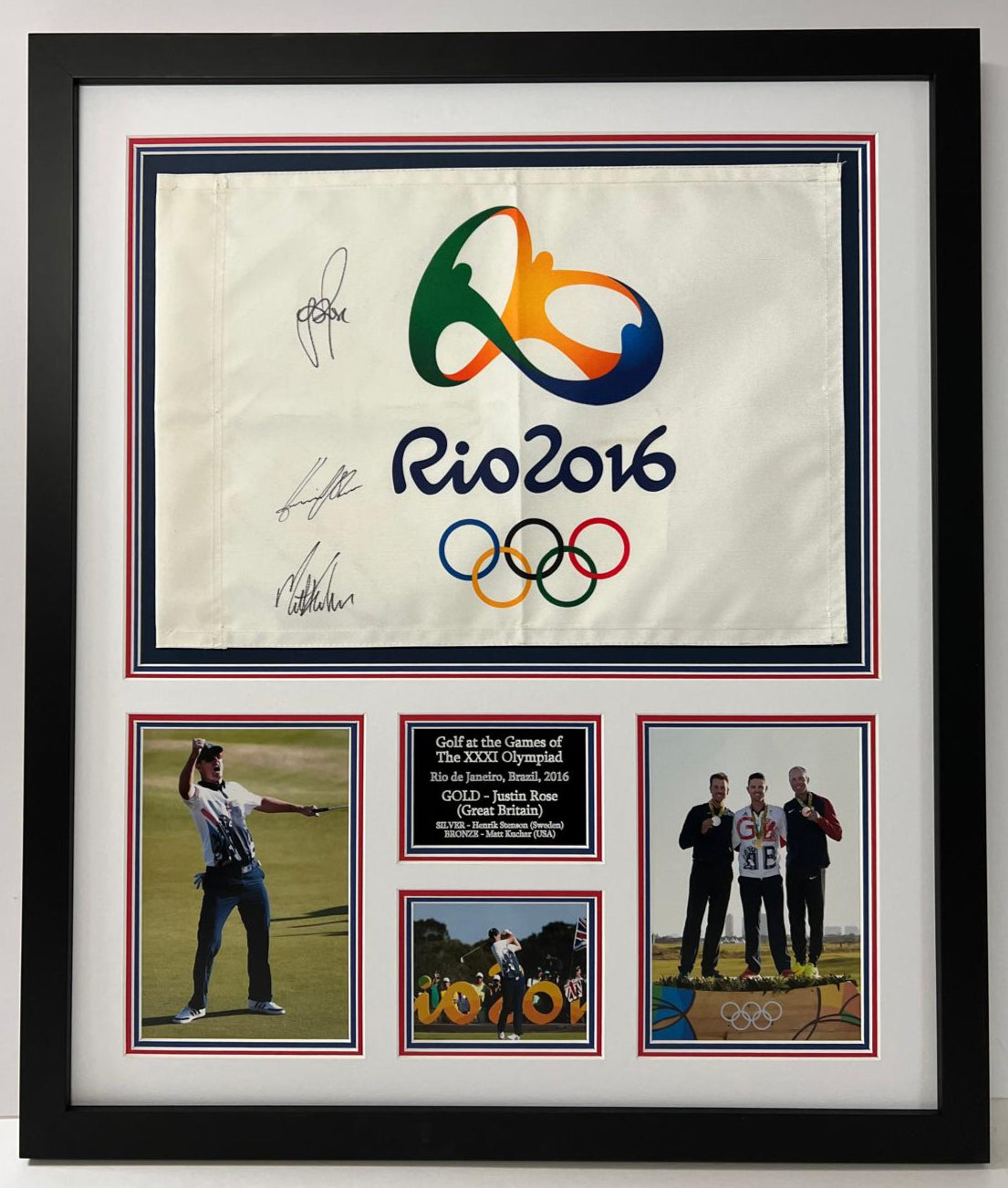 Justin Rose, Henrik Stenson, Matt Kuchar Signed 2016 Rio Olympics Golf Flag Display + COA