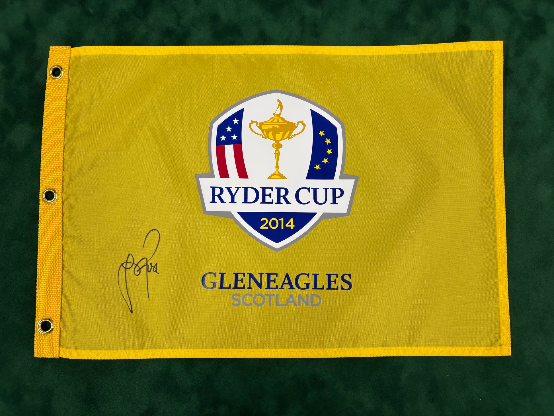 Justin Rose Signed 2014 Ryder Cup at Gleneagles Golf Flag + Dealer COA