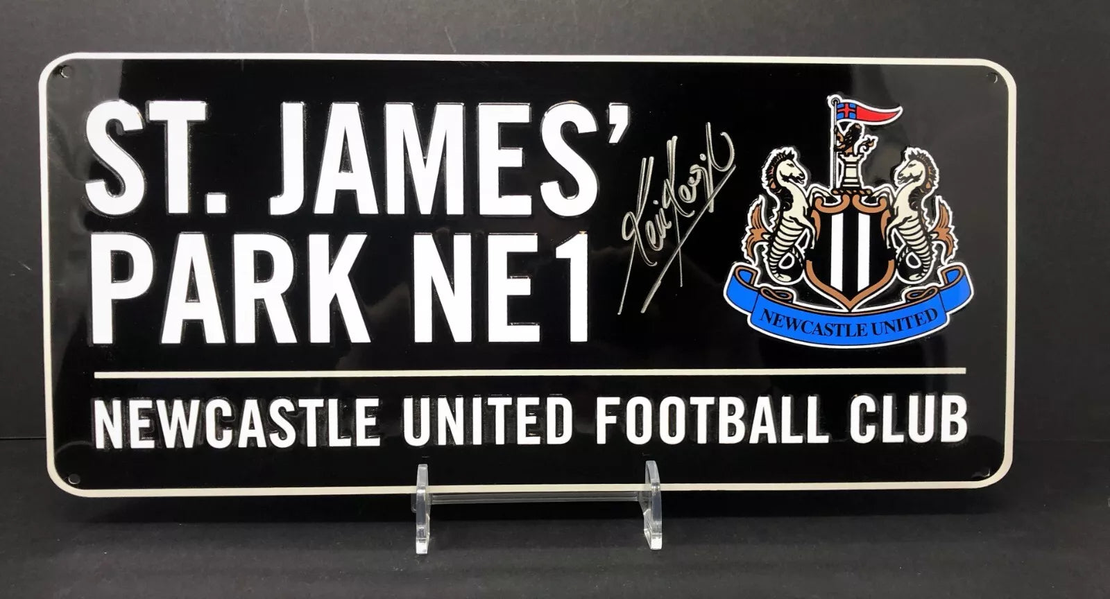 As a top-tier footballer, Kevin Keegan spent 2 seasons at Newcastle United FC. Celebrate his contribution to the team with this authentic street sign, signed by Keegan himself and complete with a Certificate of Authenticity. Show your appreciation for this footballing legend and display it proudly.