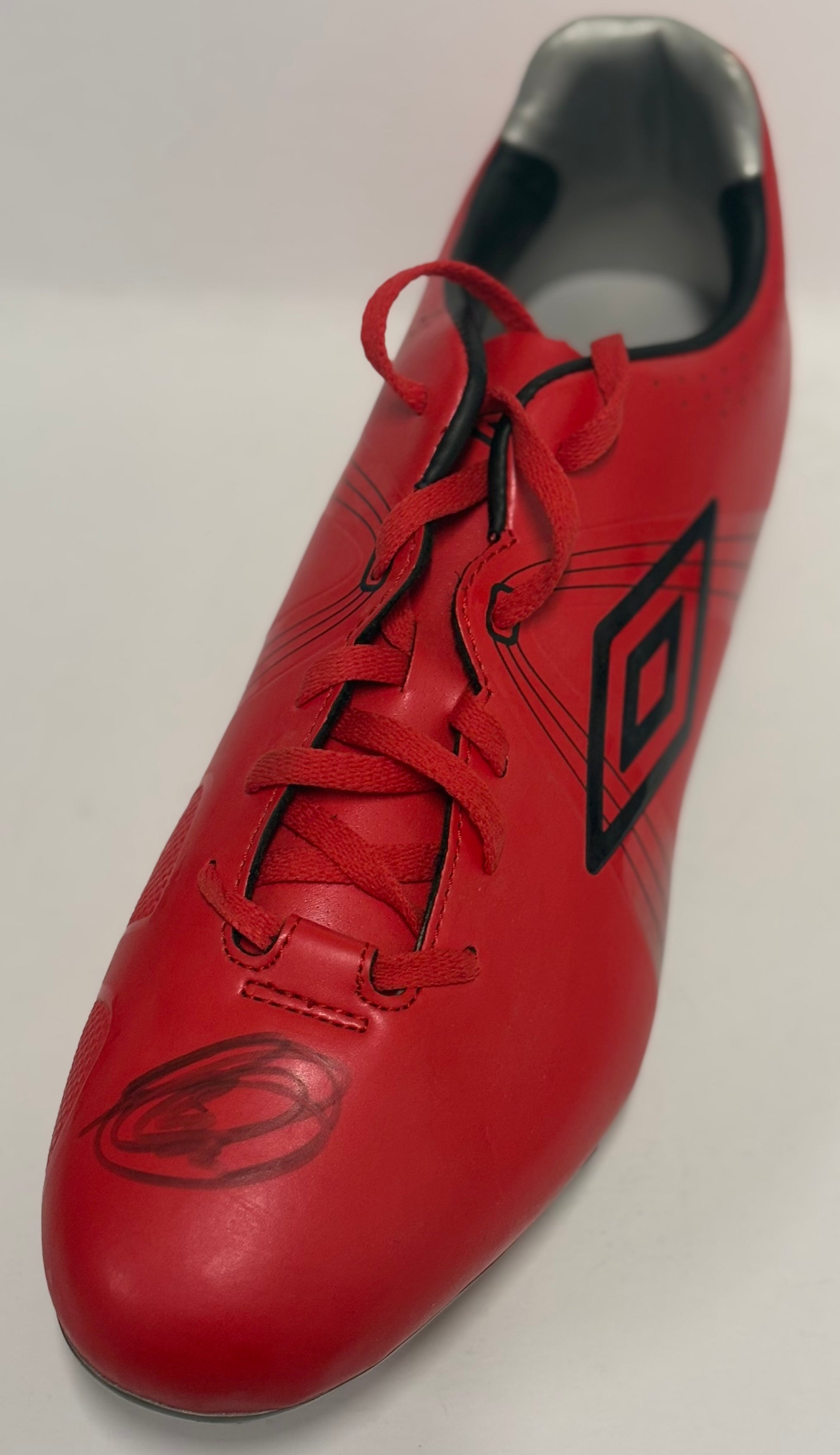Support DEM Blades with this signed red Umbro football boot by Leon Clarke, who has made 88 appearances for Sheffield United. Comes with certificate of authenticity.