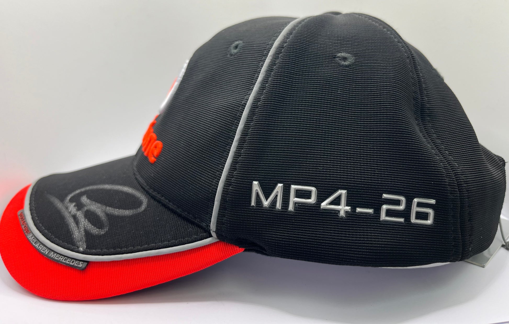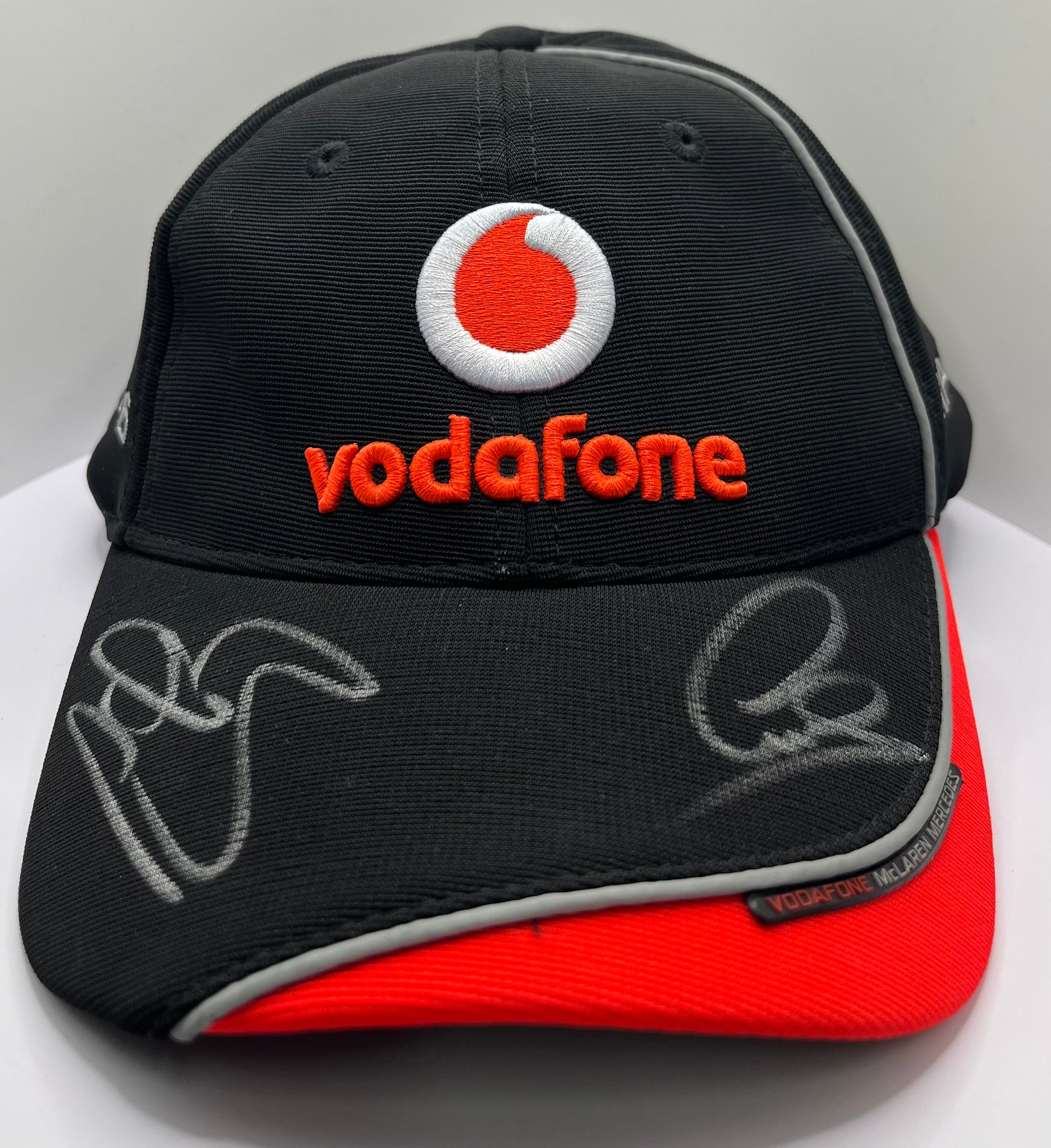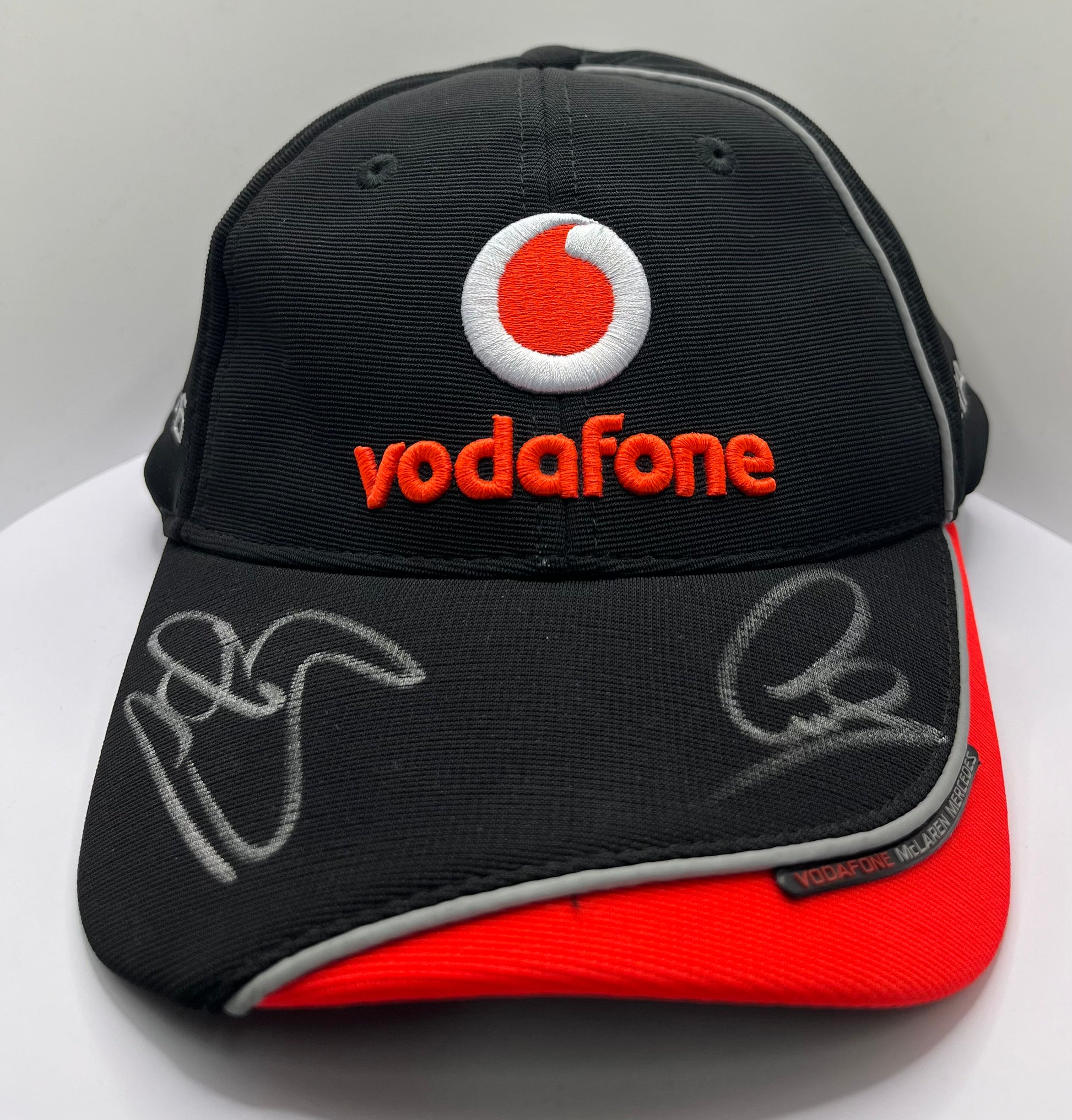 Lewis Hamilton & Jenson Button Signed Vodafone McLaren Mercedes Black & Red F1 Cap with COA