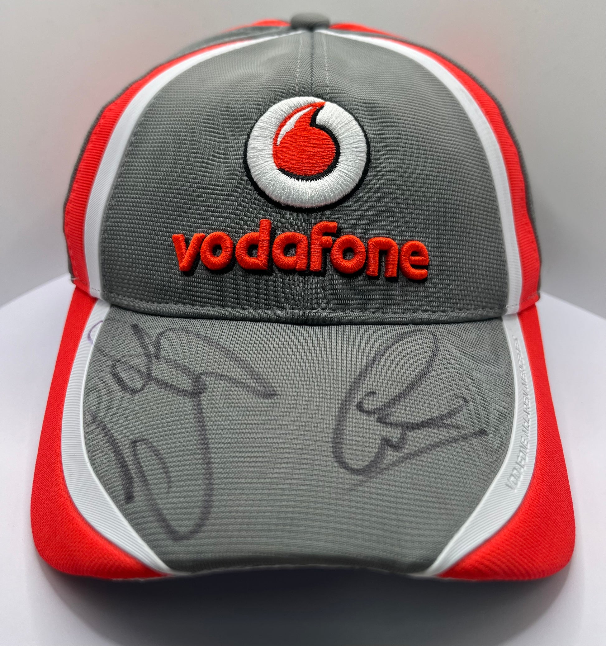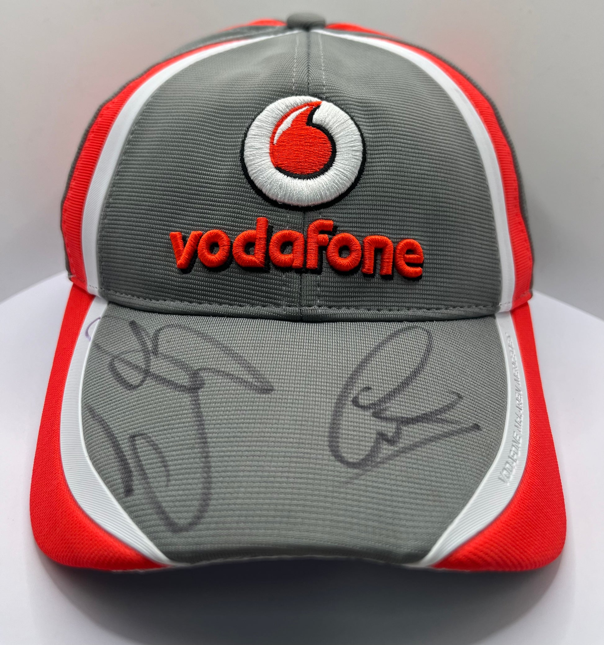 Lewis Hamilton & Jenson Button Signed Vodafone McLaren Mercedes Grey, White & Red F1 Cap with COA