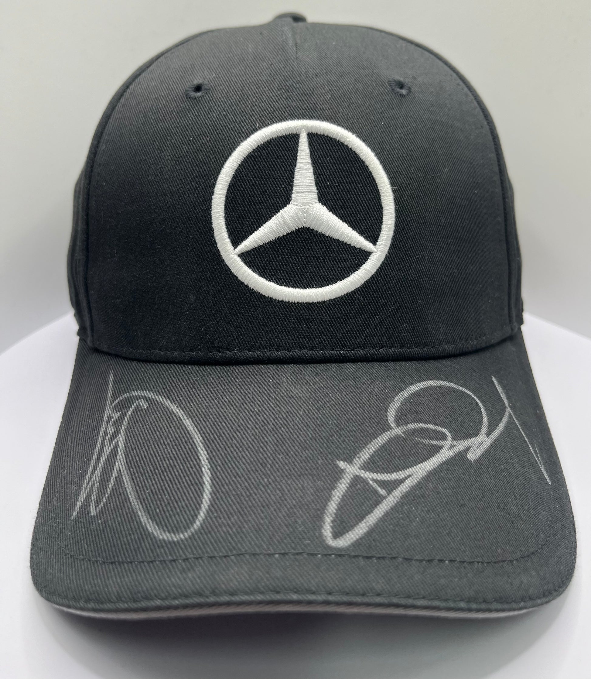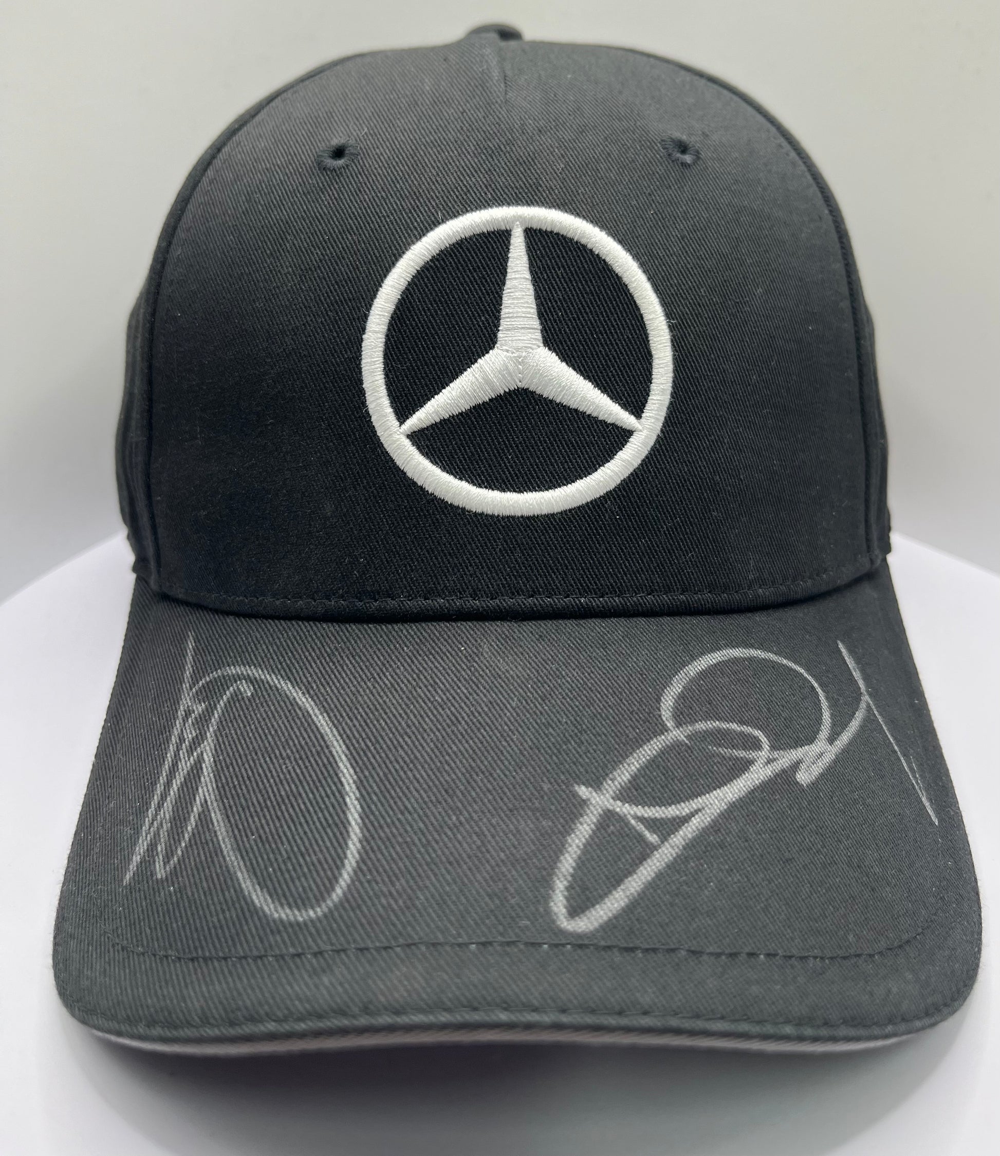 Get your hands on this black F1 cap signed by two legendary Formula 1 drivers, Lewis Hamilton & Nico Rosberg who raced together for Mercedes between 2013 and 2016. Comes with a certificate of authenticity. Show your support for Mercedes AMG Petronas and add this exclusive piece to your collection.
