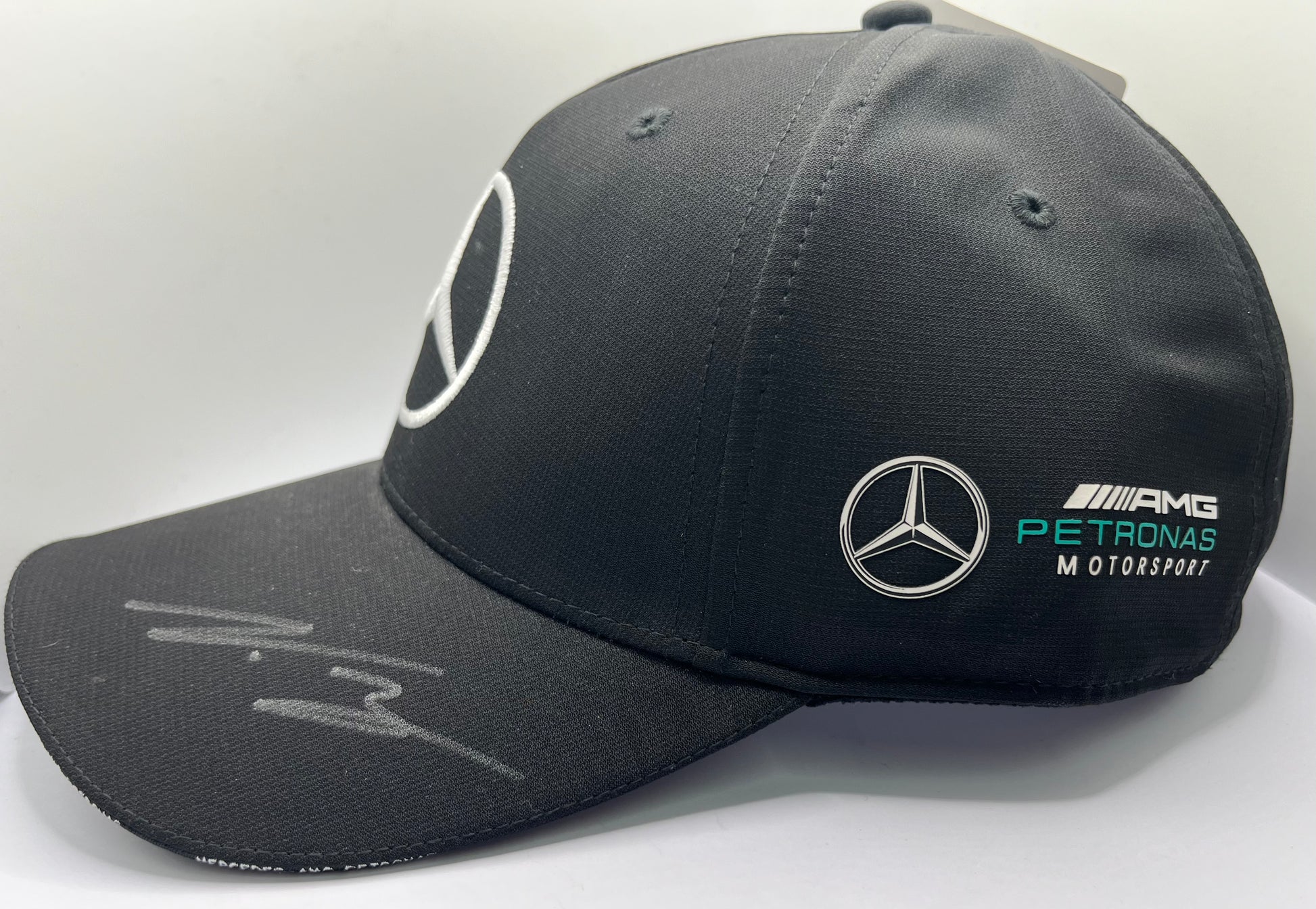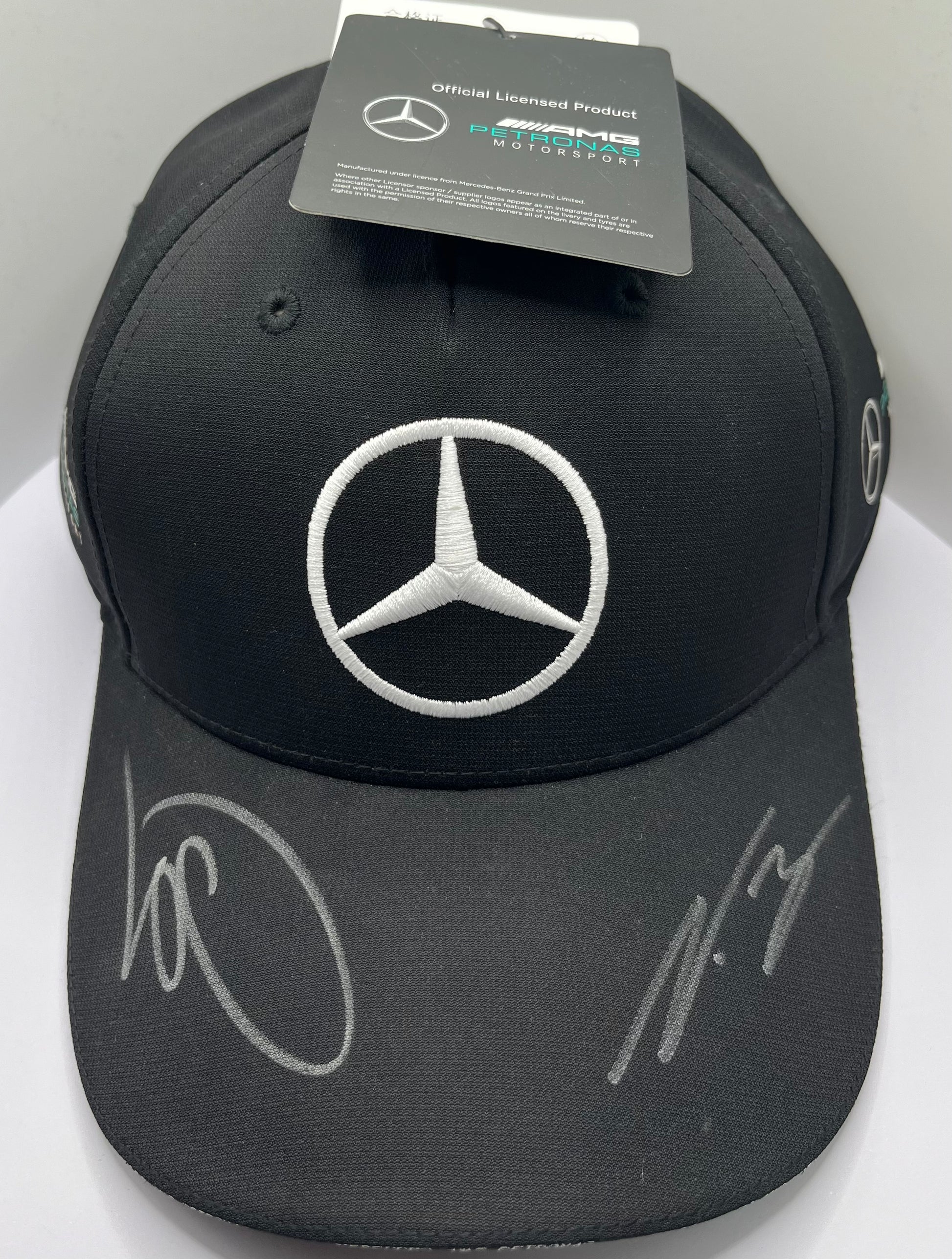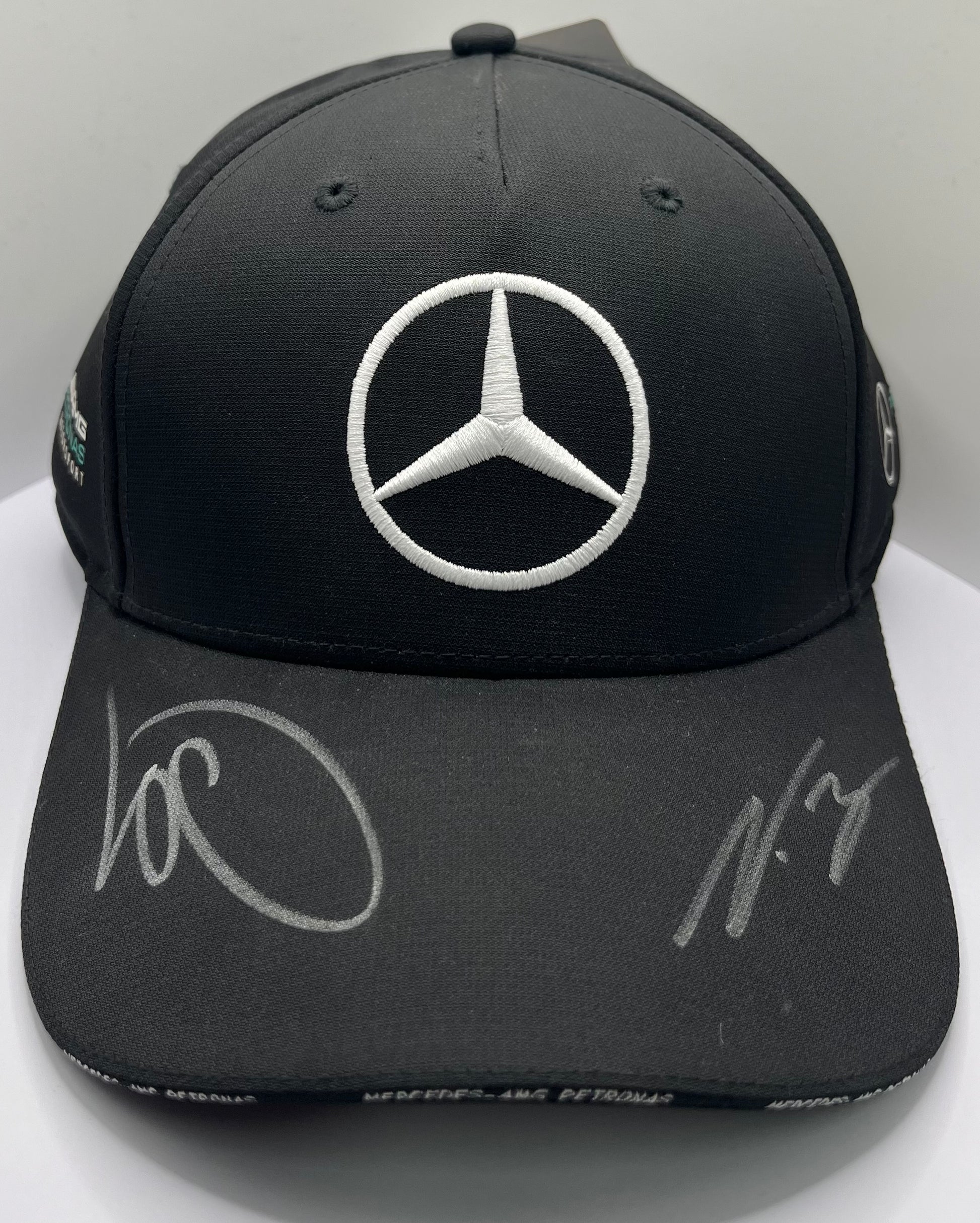 Featuring the signatures of Formula One racing legends Lewis Hamilton and Valtteri Bottas, this black Mercedes AMG Petronas F1 cap is a must-have for any fan. With a Certificate of Authenticity included, this cap is a true collector's item. Show your love for the sport and these two exceptional athletes with this limited edition piece.
