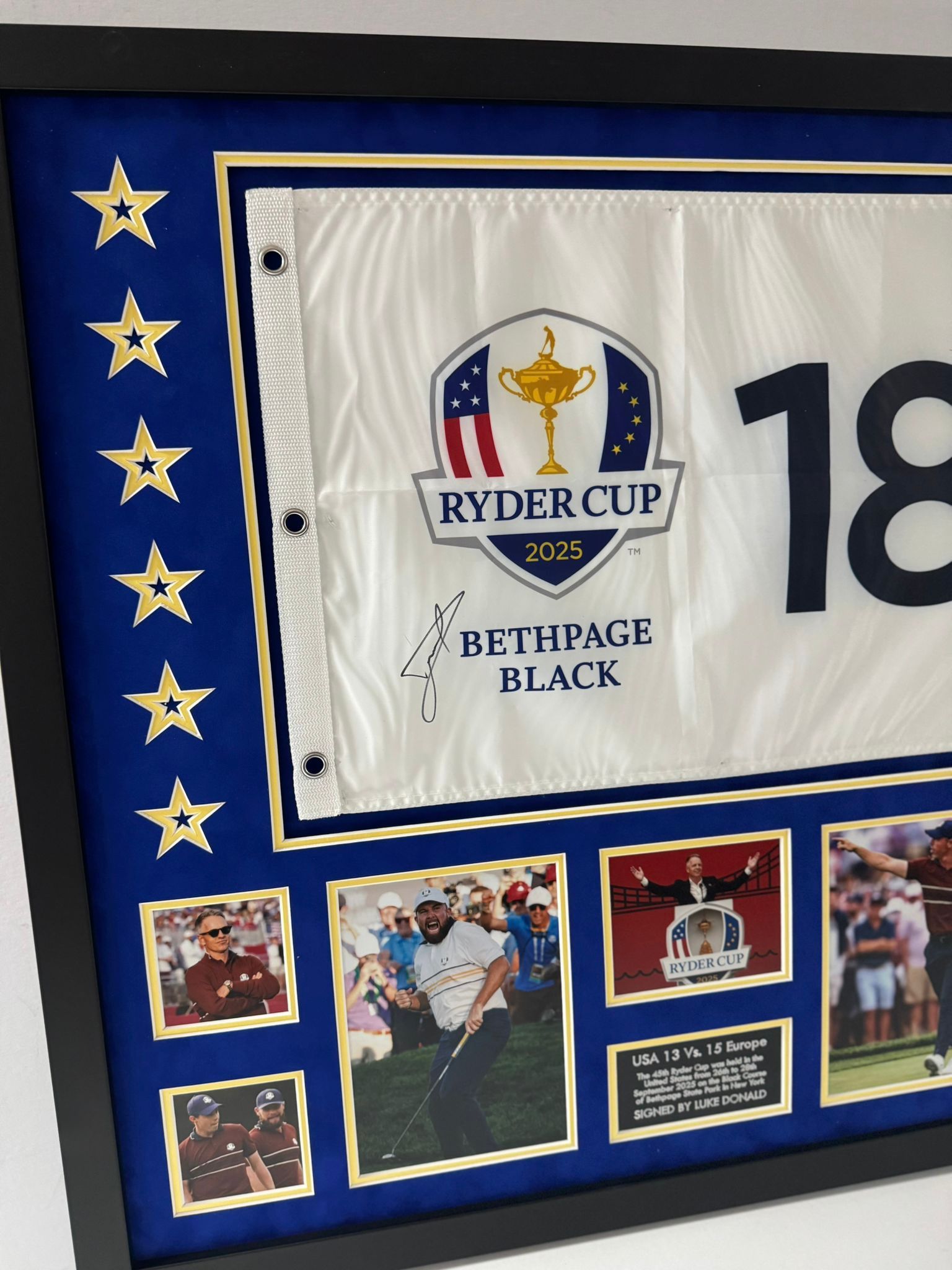 Luke Donald Captain Signed 2025 Ryder Cup at Bethpage Black Golf Flag Display + COA
