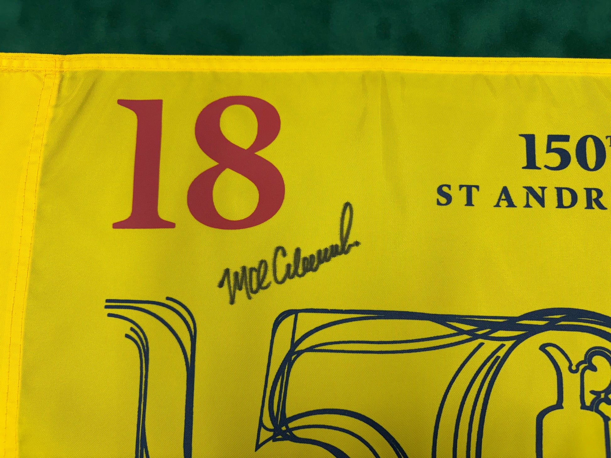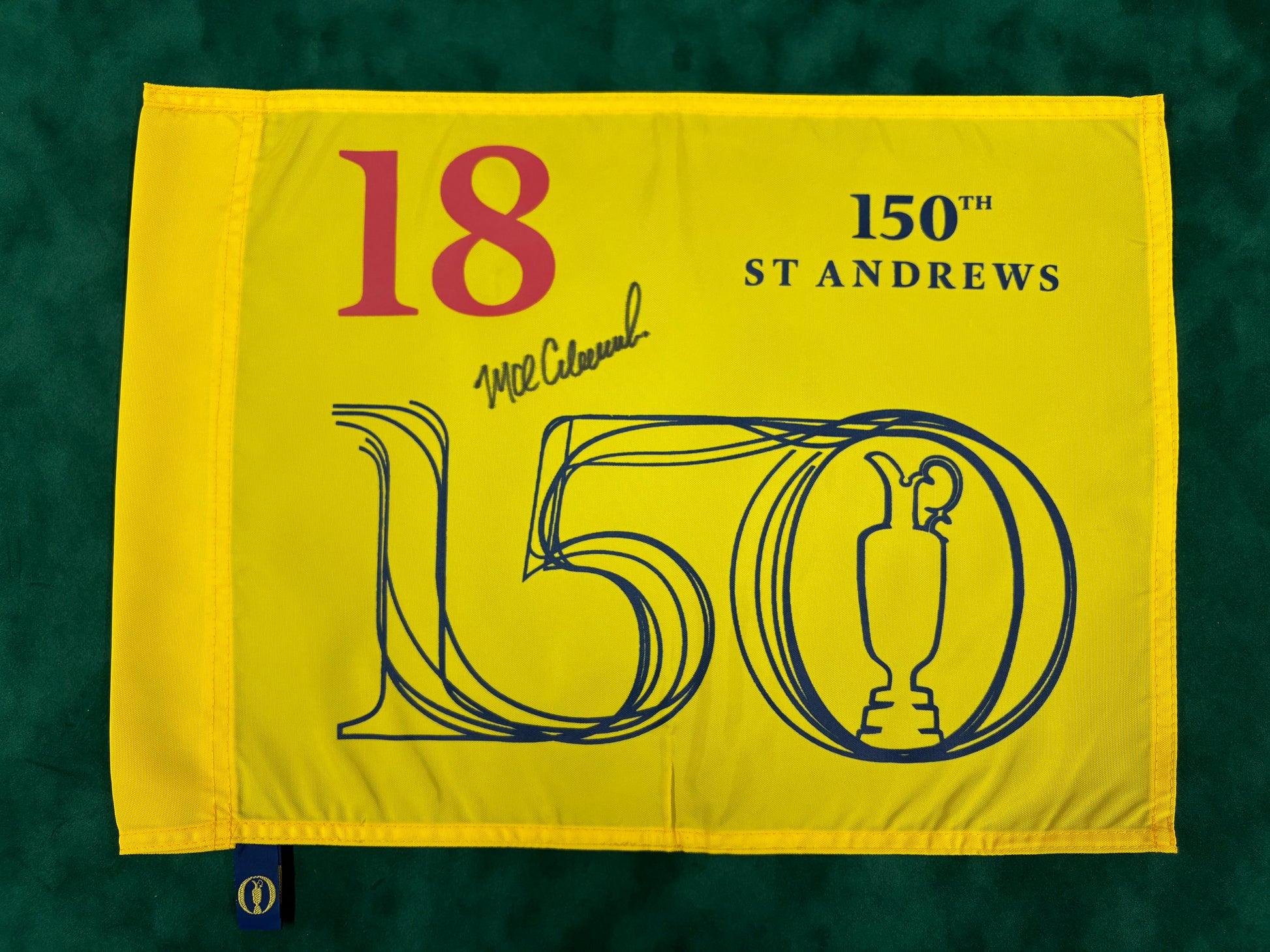 Mark Calcavecchia Signed 150th Open at St Andrews Golf Flag + Dealer COA