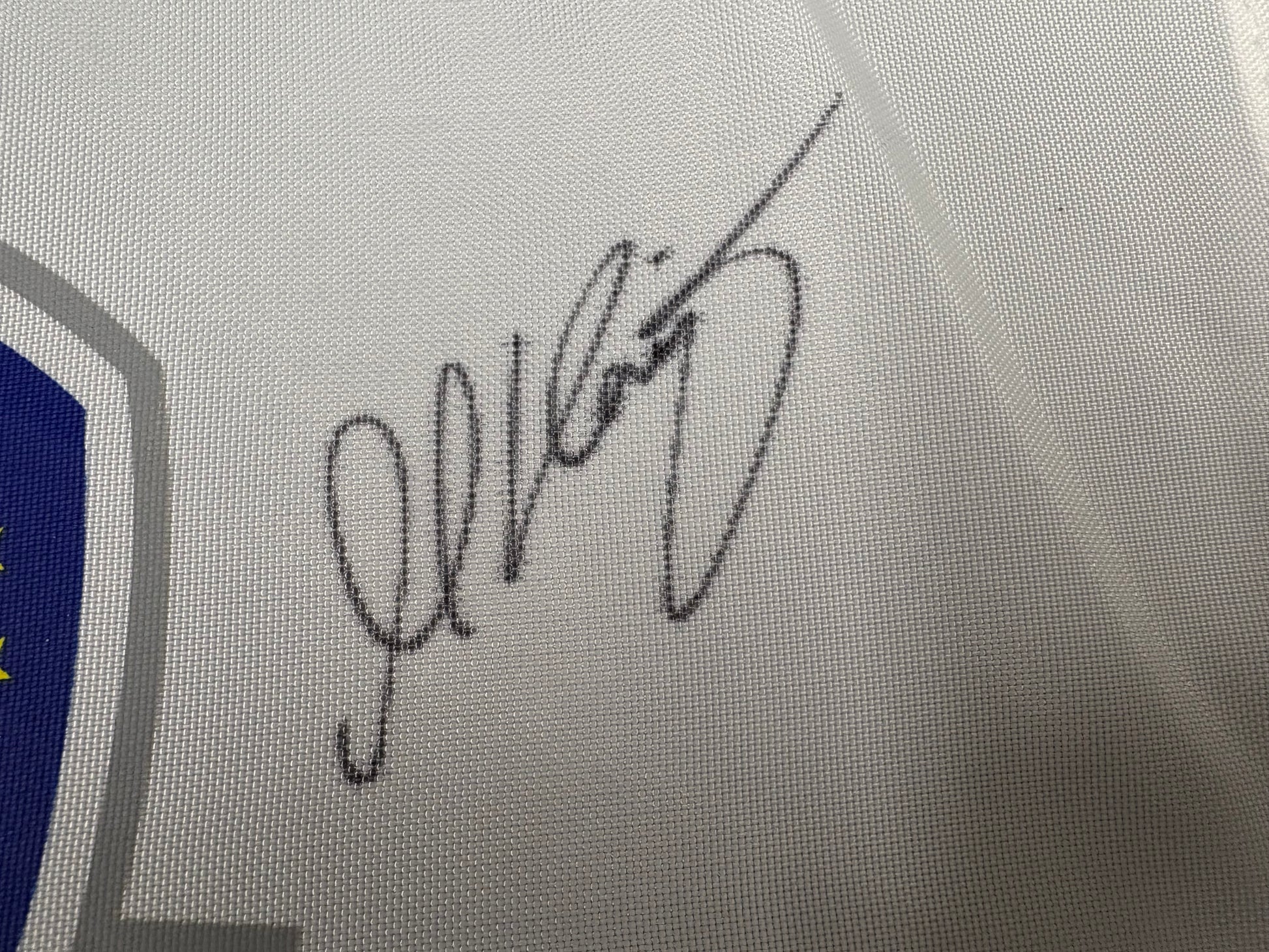 Celebrate the historic 2012 Ryder Cup with a signed flag by golf champion Martin Kaymer. The flag comes with a dealer COA for authenticity. Perfect for any golf enthusiast, this piece showcases Kaymer's skill and adds a unique element to any collection.