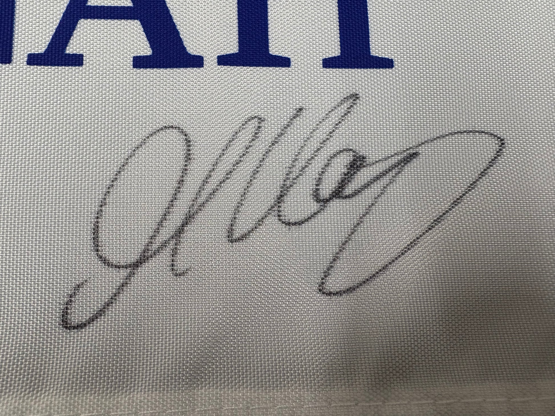Celebrate the historic 2012 Ryder Cup with a signed flag by golf champion Martin Kaymer. The flag comes with a dealer COA for authenticity. Perfect for any golf enthusiast, this piece showcases Kaymer's skill and adds a unique element to any collection.