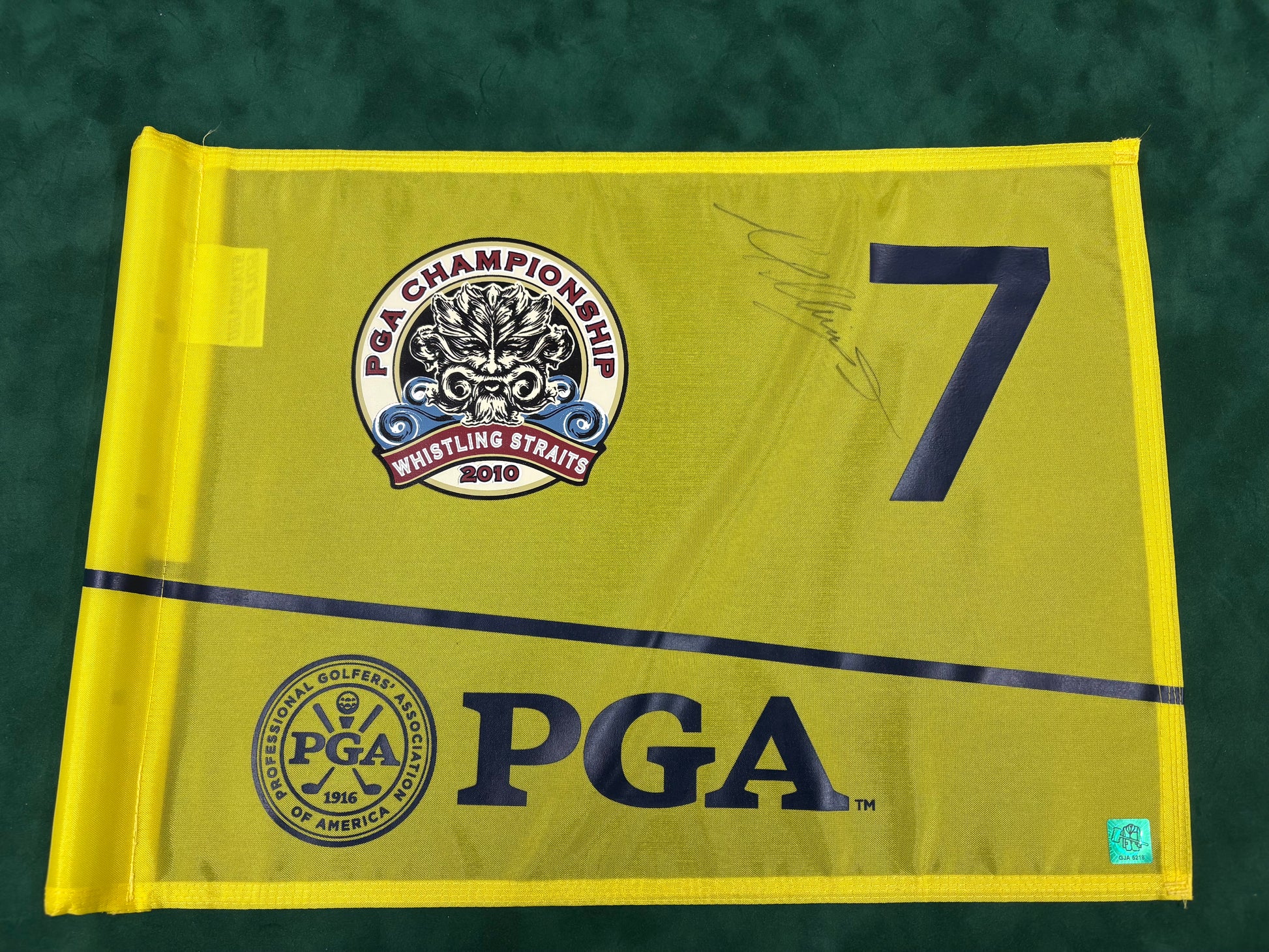 Martin Kaymer Winner Signed 2010 PGA Championship at Whistling Straits 7th Hole Course Used Golf Flag + GJA Cert
