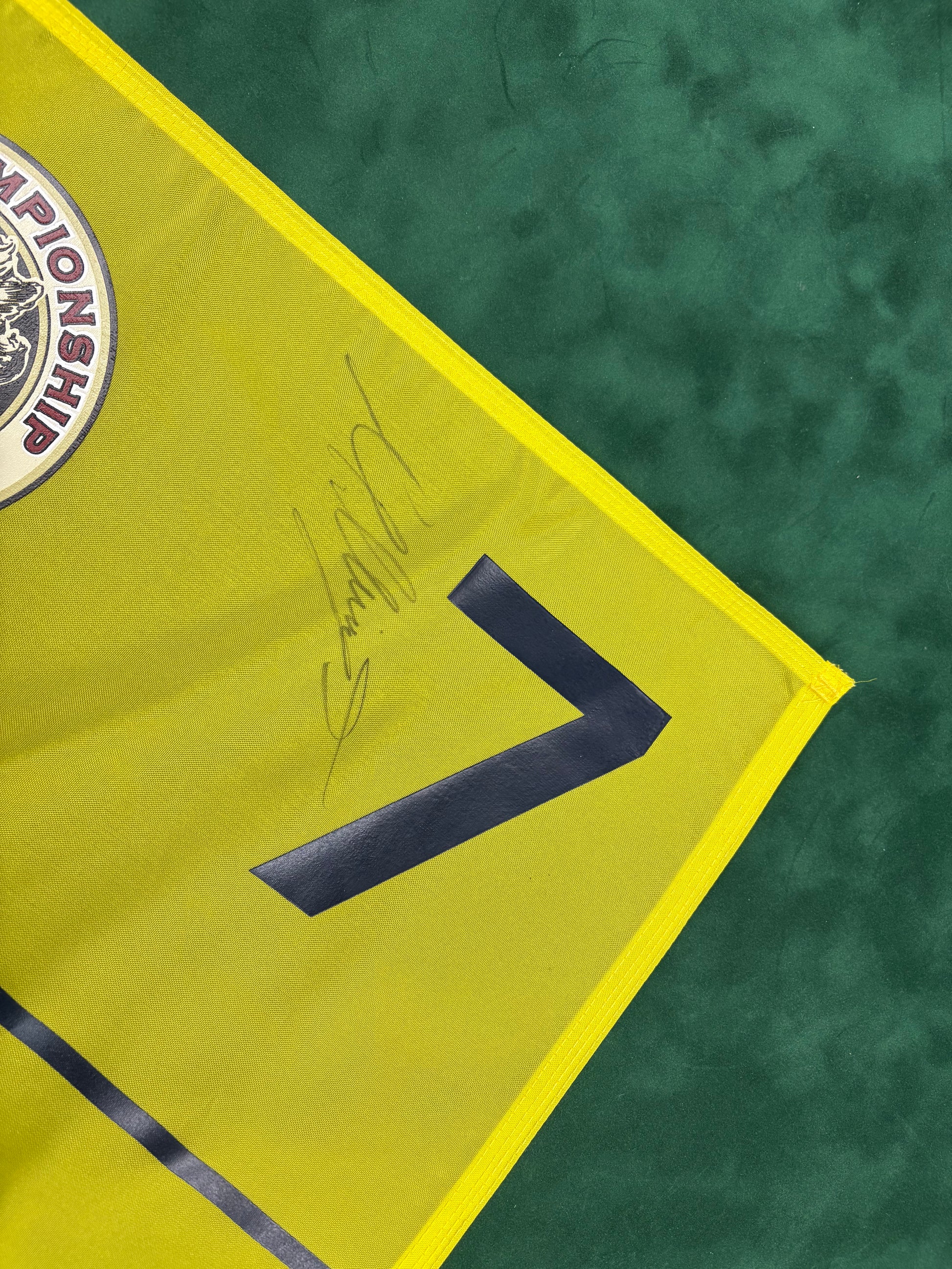 This Martin Kaymer 2010 PGA Championship golf flag is signed by the winner and was used on the 7th hole at Whistling Straits. A must-have for any golf fan, this flag is a unique collectible piece that showcases a significant moment in golf history, GJA COA included.