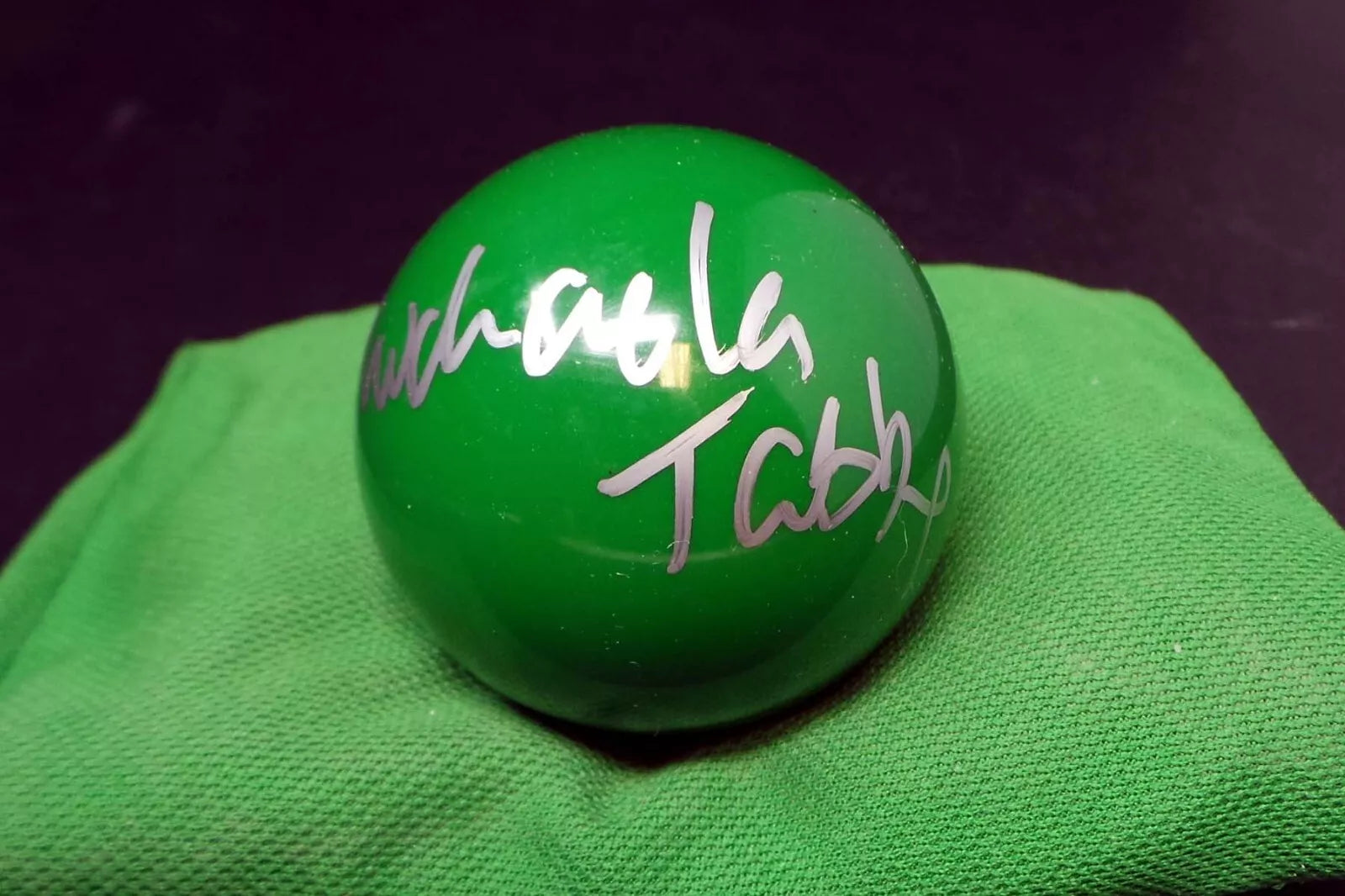 Cue up some fun with this Michaela Tabb signed green snooker ball! As a certified referee, Michaela's Autograph adds a unique touch to this collector's item. Comes with a COA for authenticity. Perfect for avid snooker fans and collectors alike!