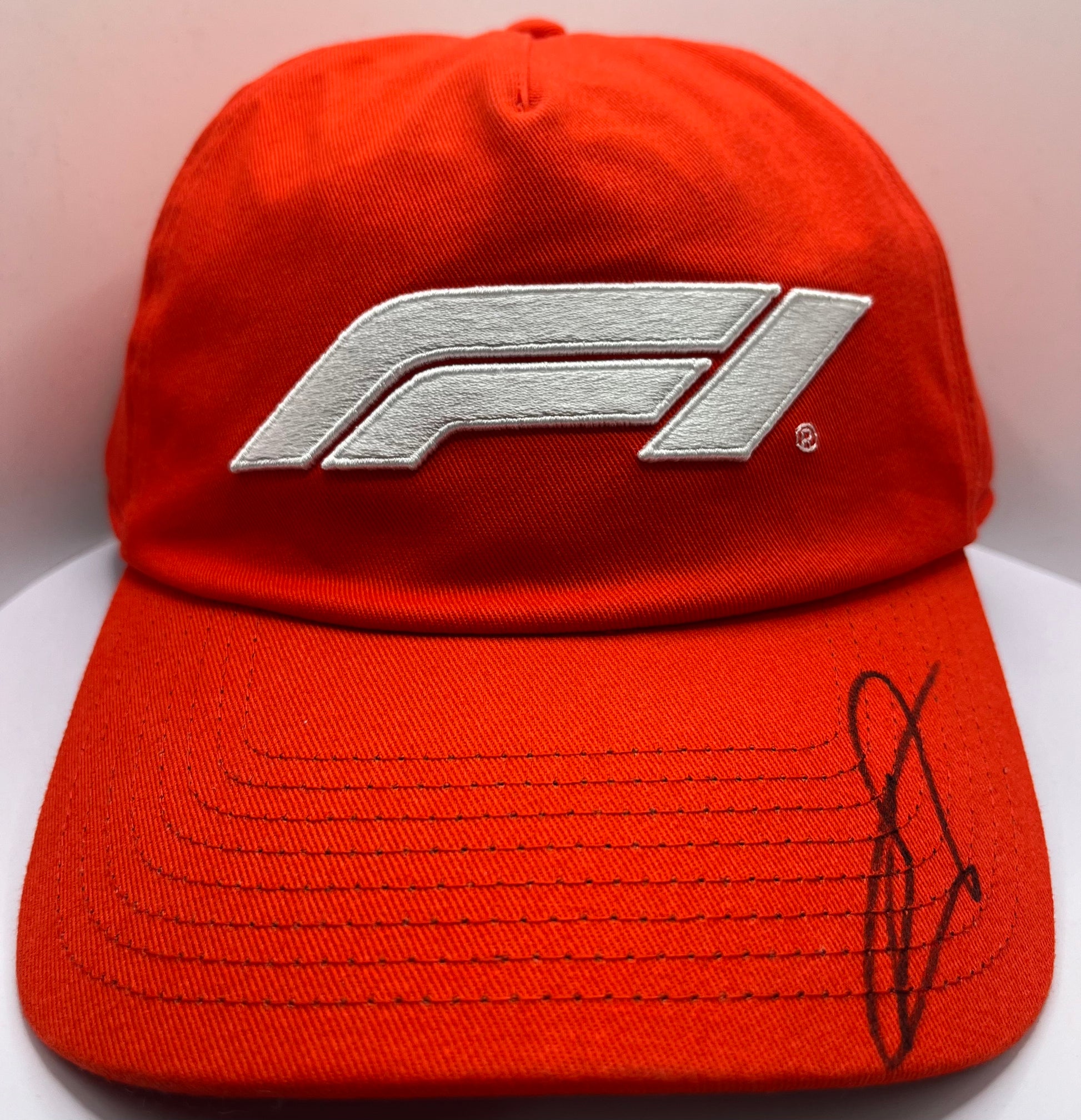 Introducing the Oliver Bearman Formula One MoneyGram Haas Driver Signed Red F1 Cap with COA. This exclusive cap features the signature of rising racing star, Oliver Bearman. Made for true Formula One fans, this cap is a must-have for any racing collection. Own a piece of racing history with this limited edition cap.