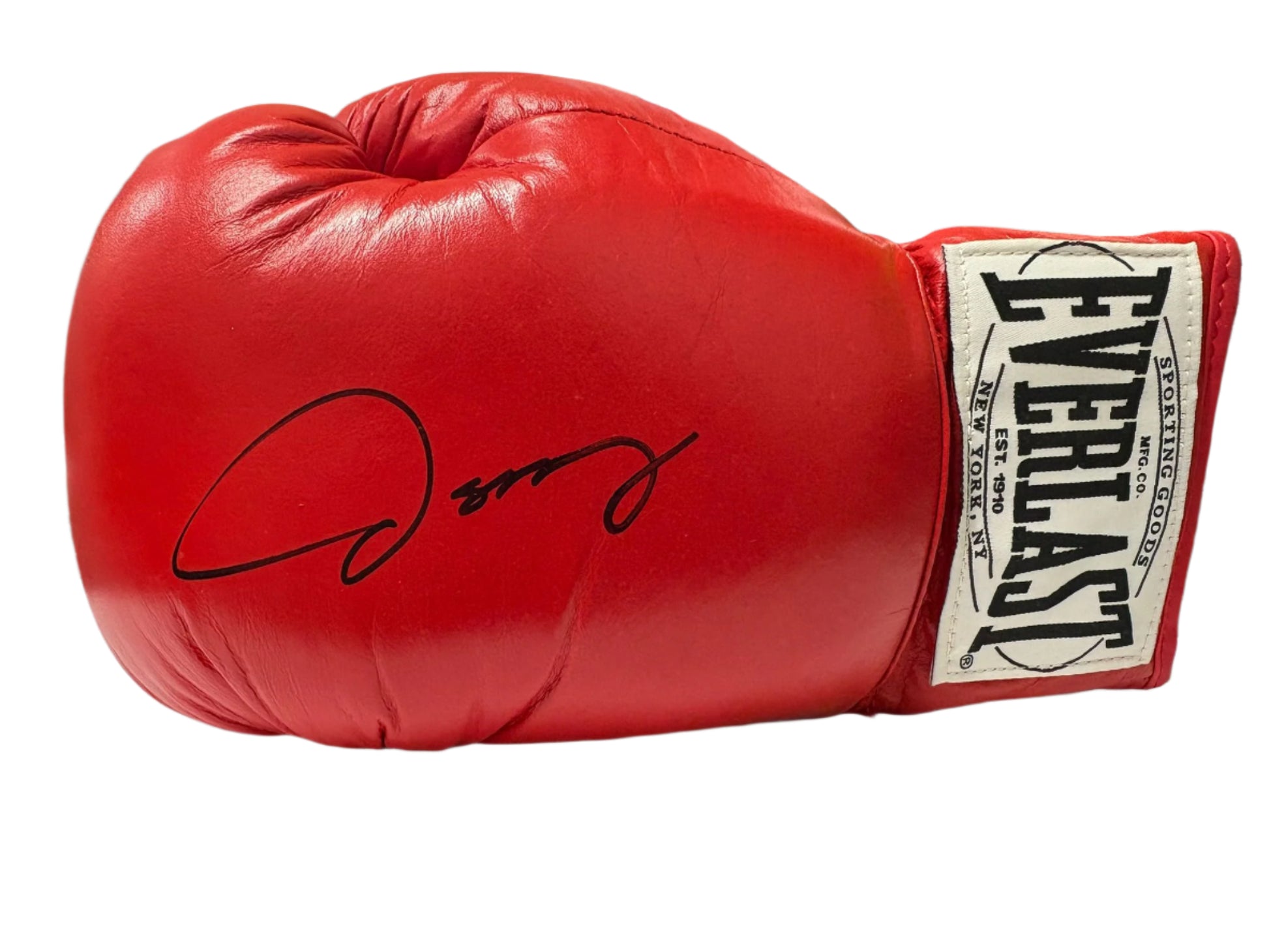 This signed red Everlast boxing glove, featuring boxing legend Oscar De Lay Hoya, is a must-have for any sports collector. As one of the most decorated fighters in history, this unique piece showcases the "Golden Boy" himself. With its accompanying certificate of authenticity, you can be confident in the value and authenticity of this rare item.