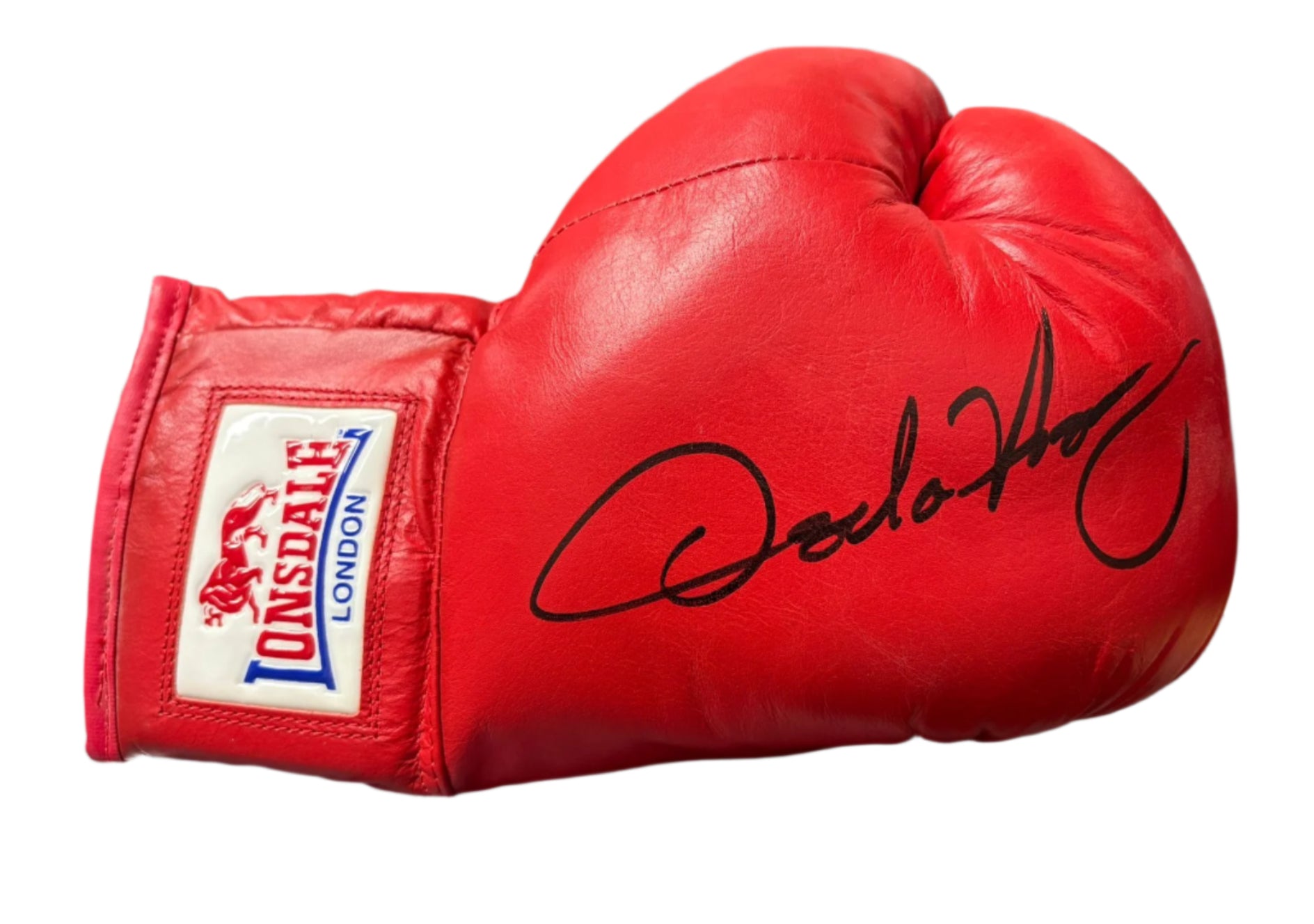 Oscar De Lay Hoya 'The Golden Boy' Signed Red Lonsdale Boxing Glove + Cert