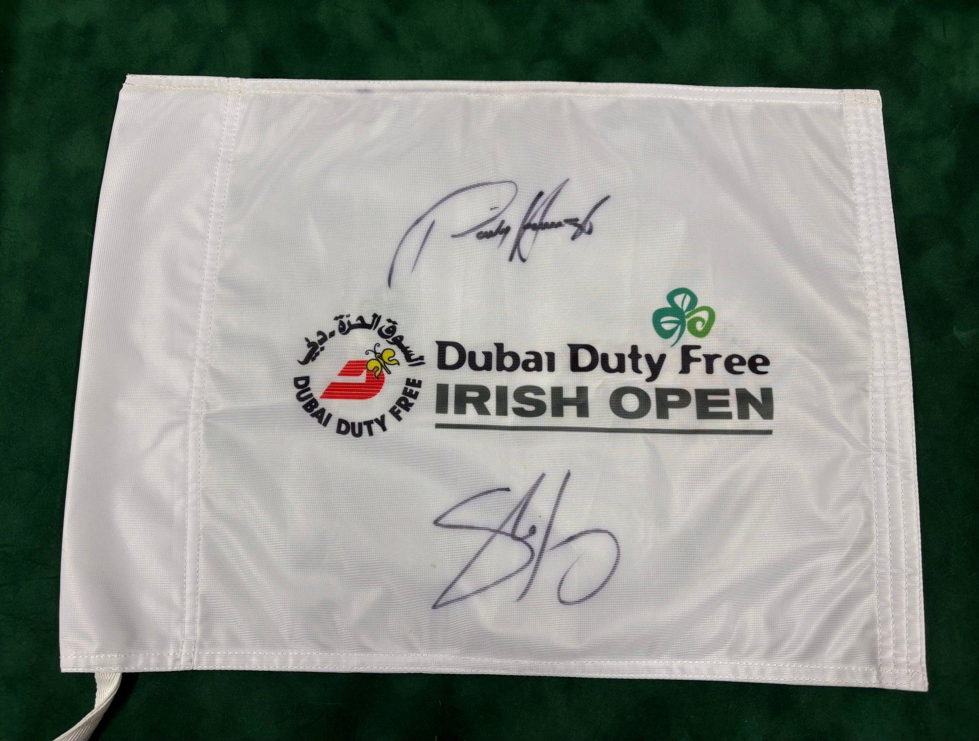 Pádraig Harrington & Shane Lowry Winners Signed Course Used Irish Open Golf Flag + Cert