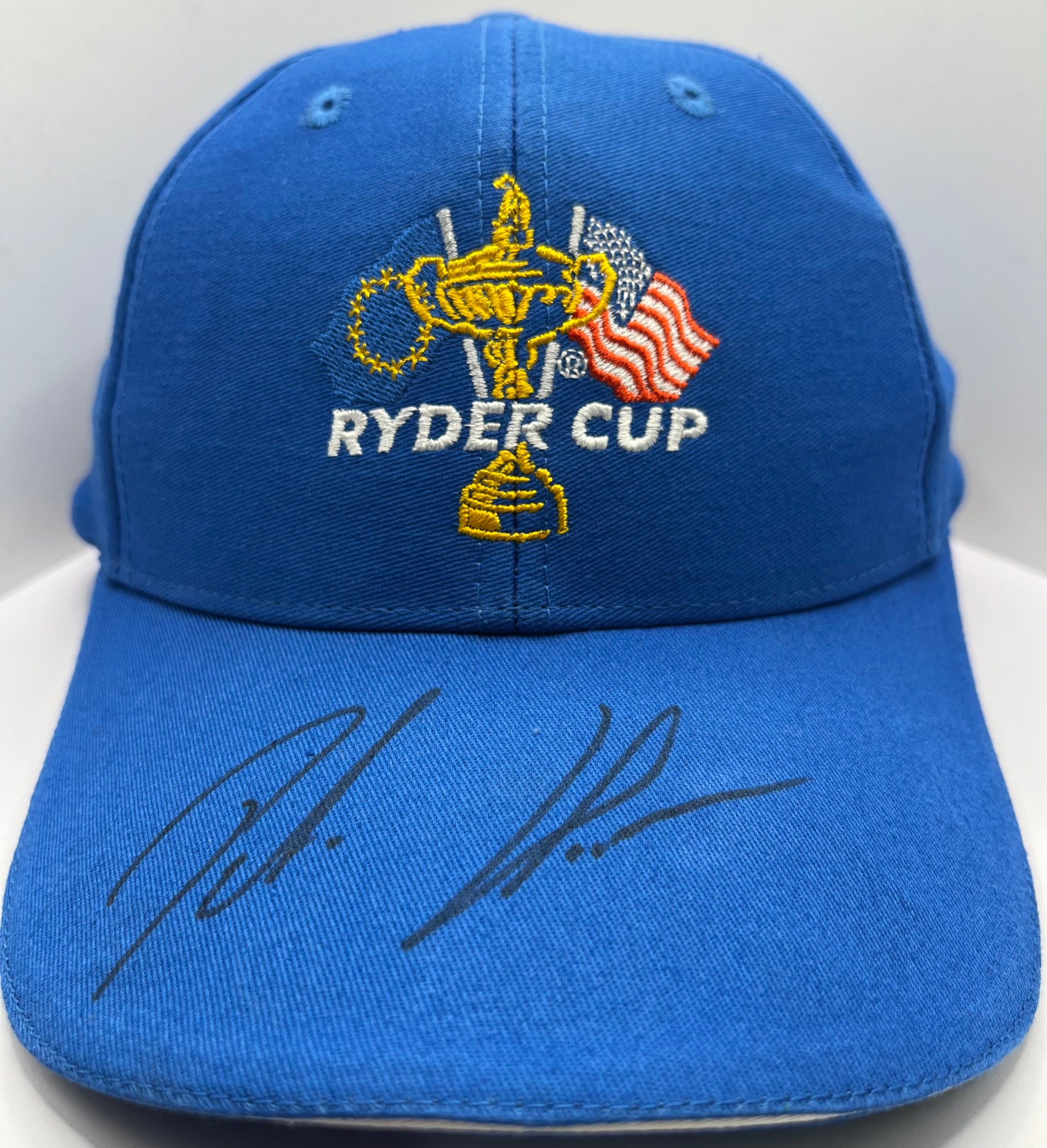 This Ryder Cup golf cap is personally signed by golf pro Peter Hanson. With a certificate of authenticity included, this collectible piece is a must-have for fans and collectors alike. Show your support for Peter Hanson and add this exclusive item to your collection